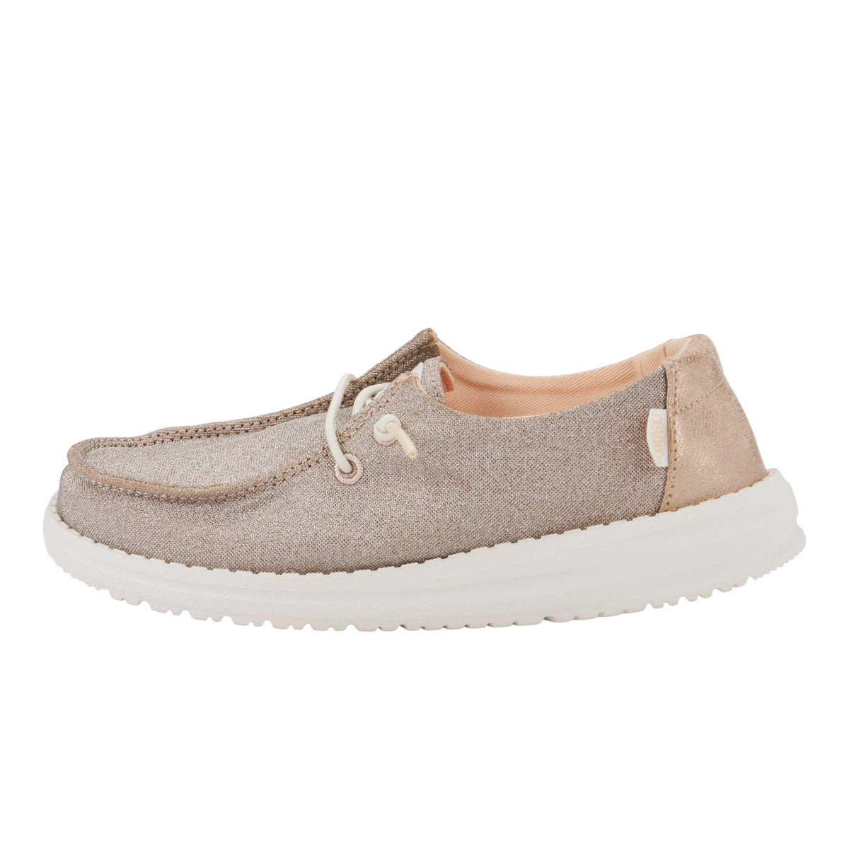 Happiness is a super comfy slip on covered in metallic colored glitter. With flexible support, elastic laces, and a removable foam insole, the Wendy Youth Metallic Sparkle will feel as good as it looks. Features glitter upper, elastic laces, lightweight outsole, flexible outsole, easy on/off system and removable foam insole.