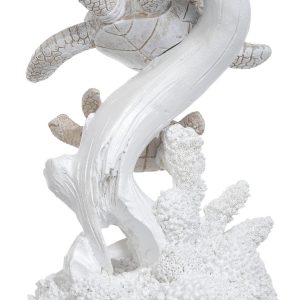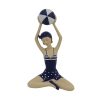Add coastal charm with this 17-inch resin mermaid accent, featuring a detailed, lifelike design atop a pedestal. Perfect for mantels, shelves, or coffee tables, it brings a touch of ocean-inspired elegance to any beach-themed space. Fabrication is 100% resin. Measures approximately 17 in x 4 in x 3.5 in.