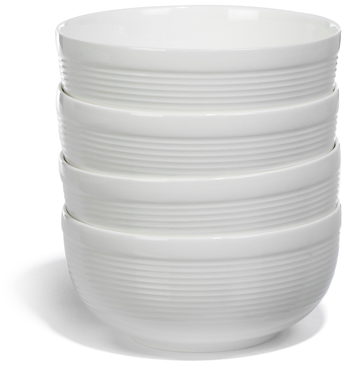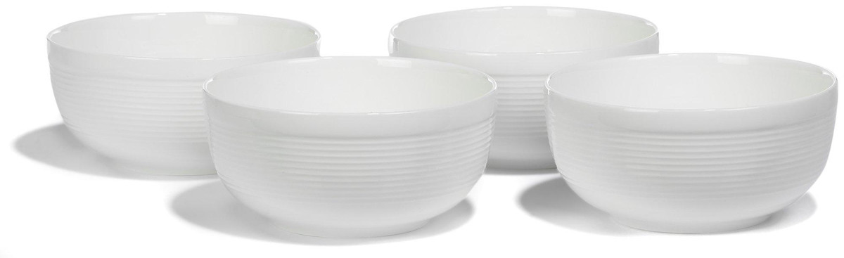 This set of 4 all purpose bowls is made from elegant premium white porcelain, offering both beauty and durability for everyday use. Ideal for soups, salads or snacks, this versatile set complements any table with a clean timeless look. Diameter is 6 in.