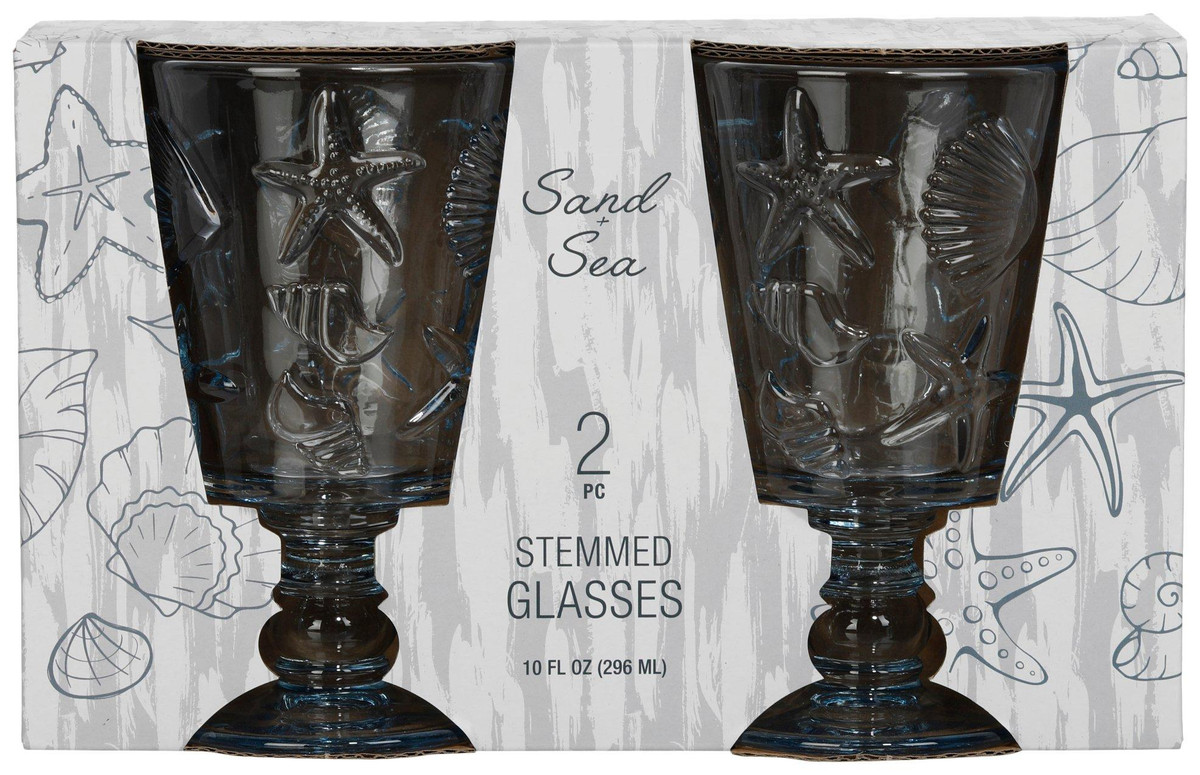 This 2 piece stemmed glass set from Sand + Sea features an elegant starfish and seashell design that brings coastal living for your home. Perfect for serving wine or spritzers, this set adds a breezy seaside touch to any gathering. The delicate marine motifs etched on clear glass offer a relaxed yet refined style. Capacity is 10 OZ for each glass.