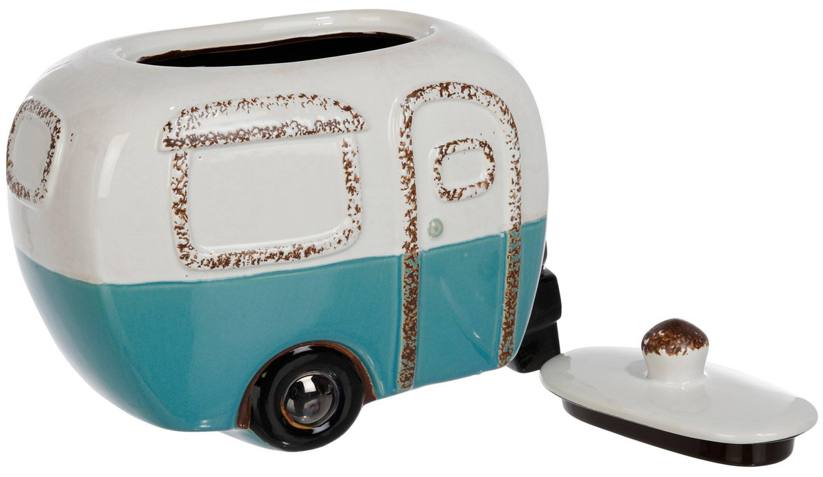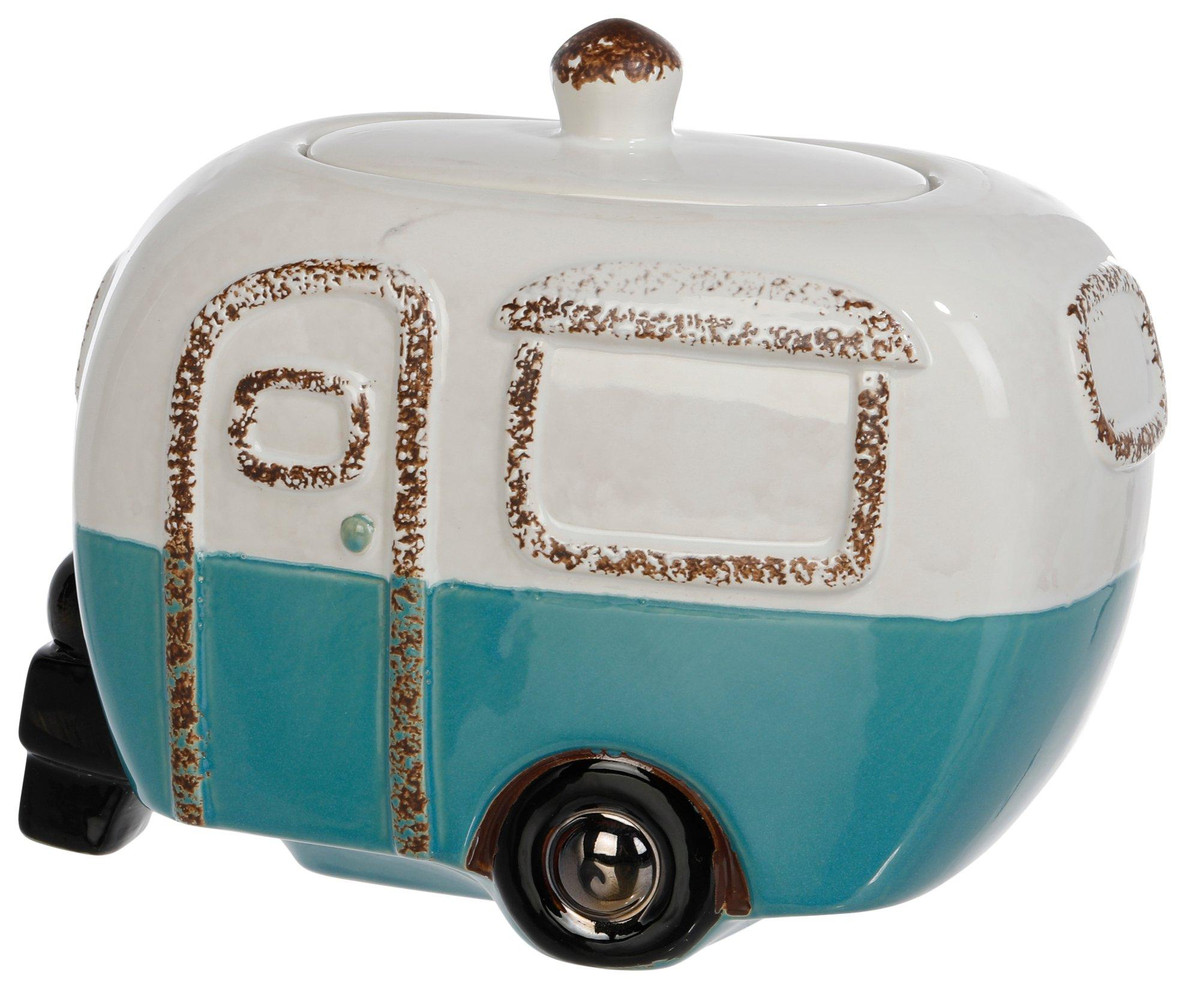 Add a touch of retro charm to your kitchen with this 10-inch Blue Camper Van Canister. Crafted from ceramic, it features a whimsical figural design and holds up to 132 fl oz. Perfect for storing treats or dry goods, it measures 10 in x 5 in x 8 in and brings a fun, nostalgic vibe to any space.