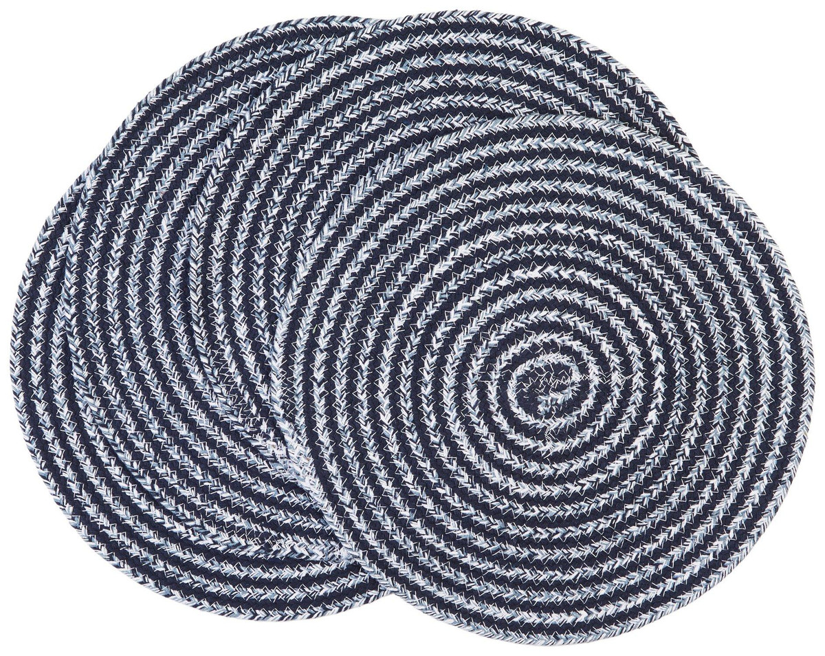 Elevate your table setting with this round set of four placemats crafted from 100% recycled cotton. The deep navy blue tone adds classic charm while promoting eco-friendly living. Durable and stylish, these mats bring texture and sustainability to everyday meals or festive gatherings.