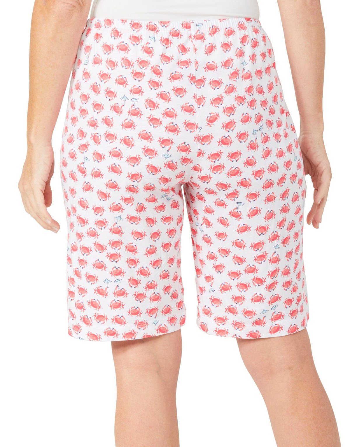 Add a playful touch to your lounge look with the Womens Cooling Crabs Pajama Shorts. Featuring a charming crab print, a comfy drawstring waistband, 10 inch inseam, and a relaxed Bermuda length, these shorts are perfect for cozy nights and laid-back mornings. Fabrication 60% cotton, 40% rayon