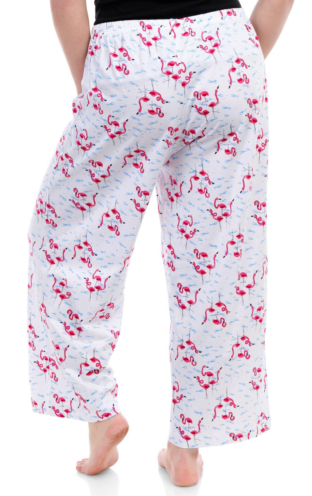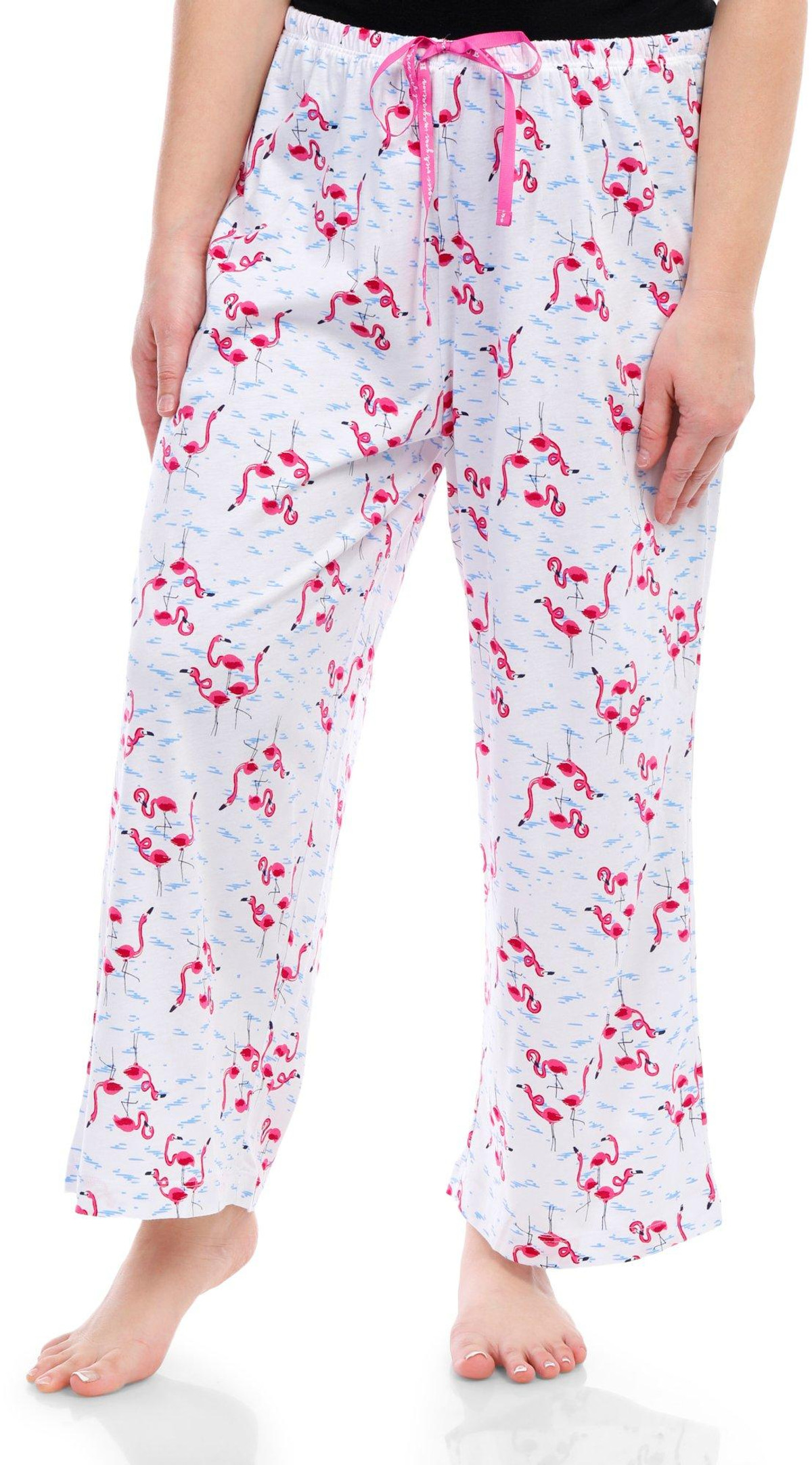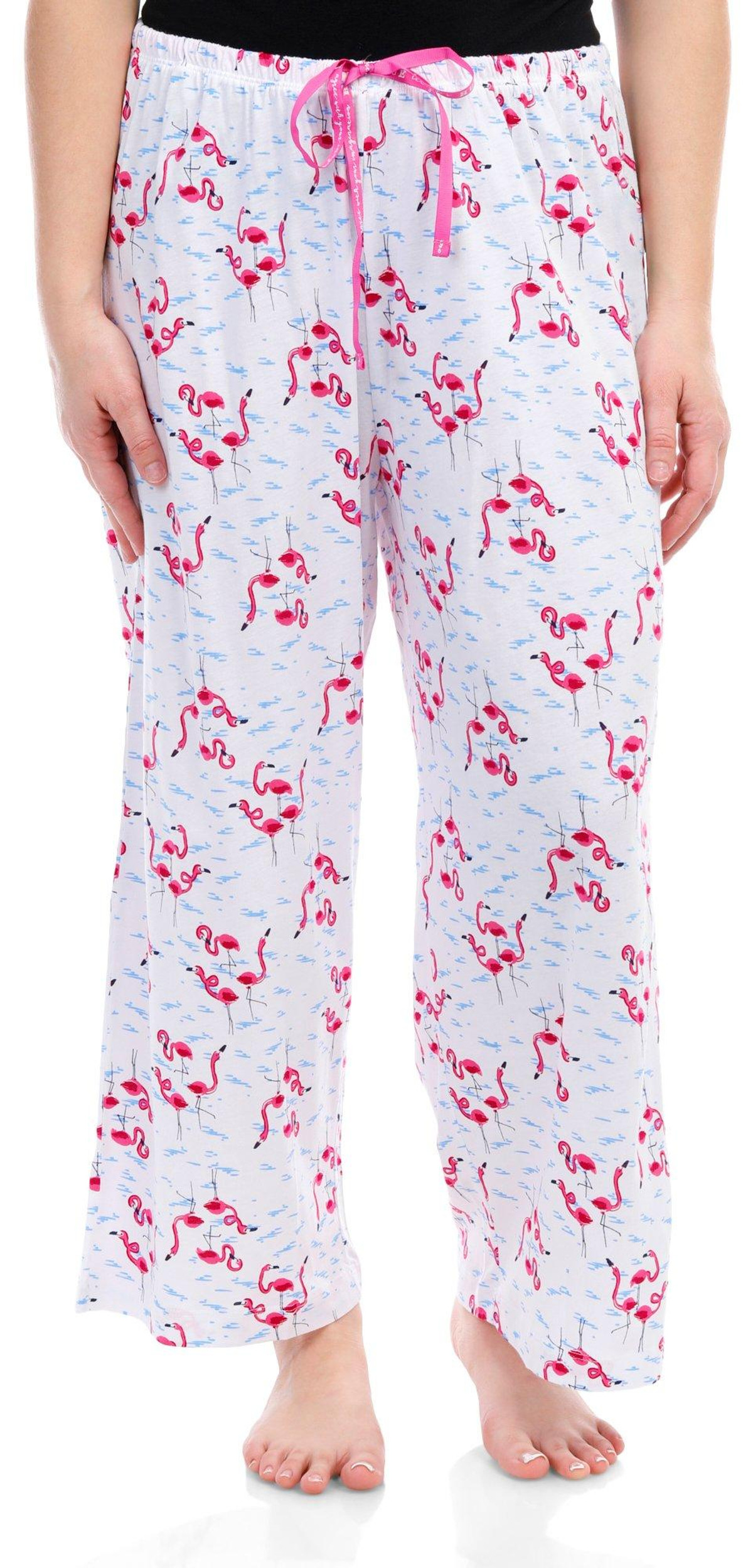 Stay cool and stylish with these Drawstring Sleep Capris. Featuring a playful flamingo print pattern, these capris add a fun touch to your nighttime wardrobe. The drawstring waistband ensures a comfortable and adjustable fit, while the temperature-regulating fabric keeps you cool throughout the night. Perfect for warm nights or lounging at home, these sleep capris combine comfort and style effortlessly. Fabrication is 60% cotton and 40% rayon.
