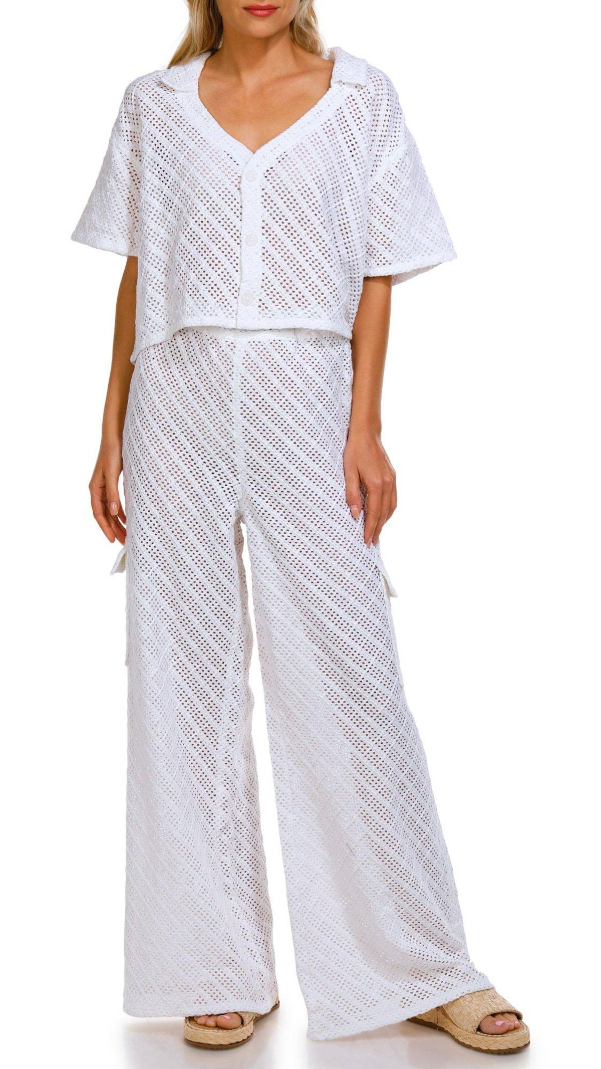Introducing the Juniors Crochet Button Down Crop Top, crafted from 100% cotton for a soft and breathable feel. This stylish top features a solid color and a button-down front, adding a touch of classic elegance. The collared neckline enhances its sophisticated look, while the cropped 17-inch length offers a modern, trendy appeal. Perfect for casual outings or dressing up, this versatile crop top is a must-have addition to your wardrobe.