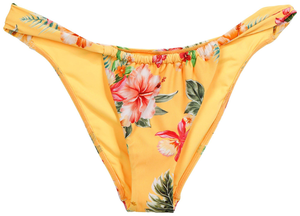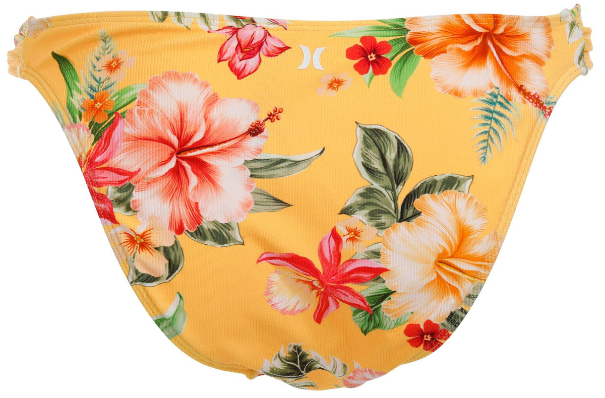Complete your beach look with the Juniors Malia Ribbed Swim Bottoms, featuring a bold tropical floral print, cheeky fit, and textured ribbed fabric. These stylish bottoms offer a flattering silhouette with a playful, sun-ready vibe.