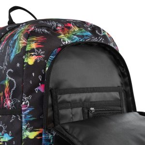 The Recess Backpack combines practical storage with style. It features a zip front pocket, an organizer pouch, and reflective daisy chain webbing. Stay organized with a padded laptop compartment and stretch mesh bottle pockets. Backpack measures 16 in. x 12.5 in. x 7.5in. with a 24.5L capacity
