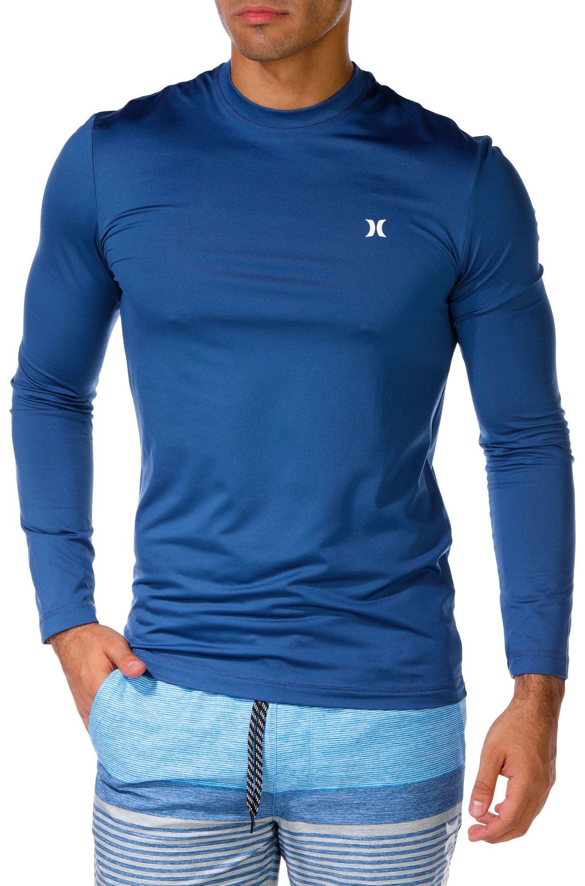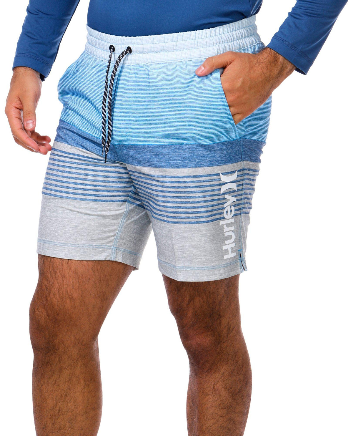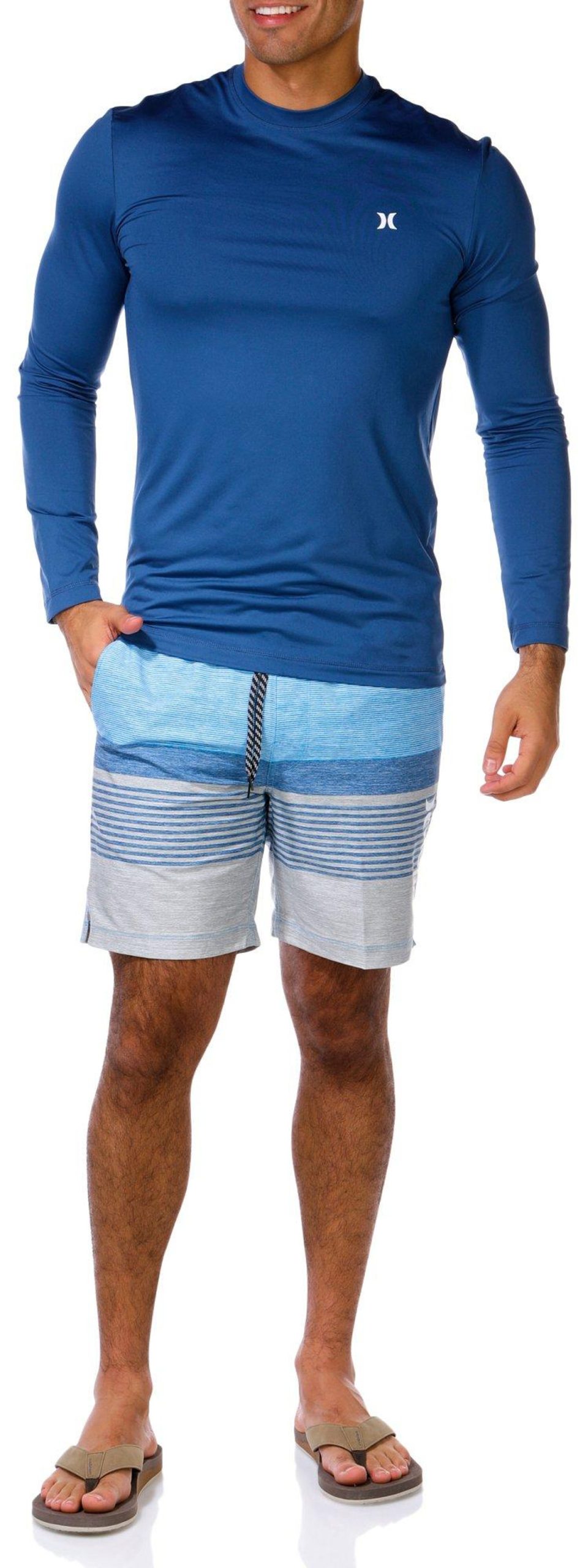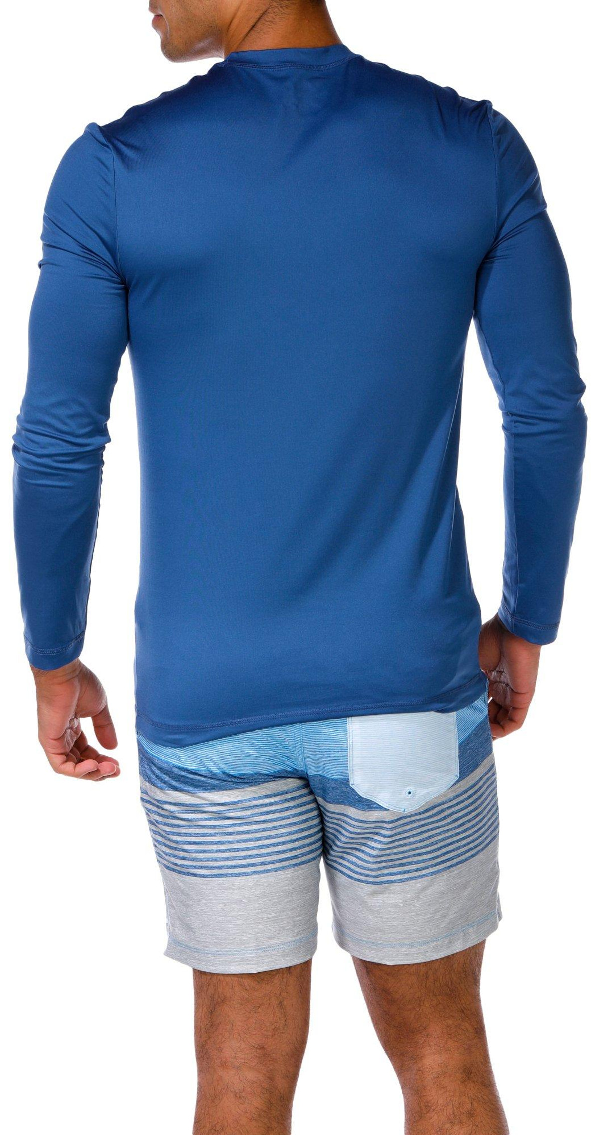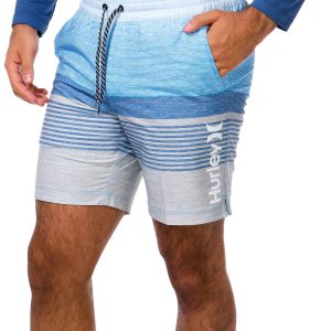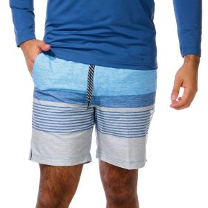 Make waves with the Men’s 2-Piece Epic Ombre Swim Shorts Set. This stylish duo features a long sleeve rashguard for sun protection and striped swim shorts with a bold ombre design.