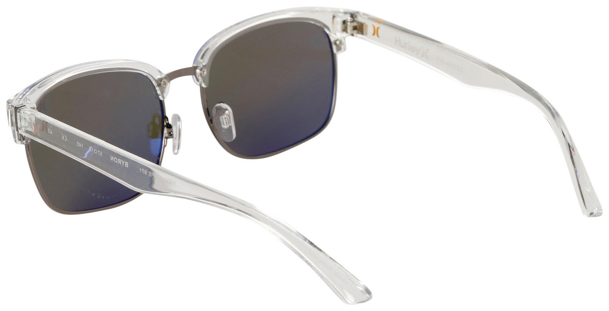 These Mens Sunglasses feature a transparent matte frame design, a classic rectangular mirrored lens frame, polarized lenses, and 100% UV sun protection.