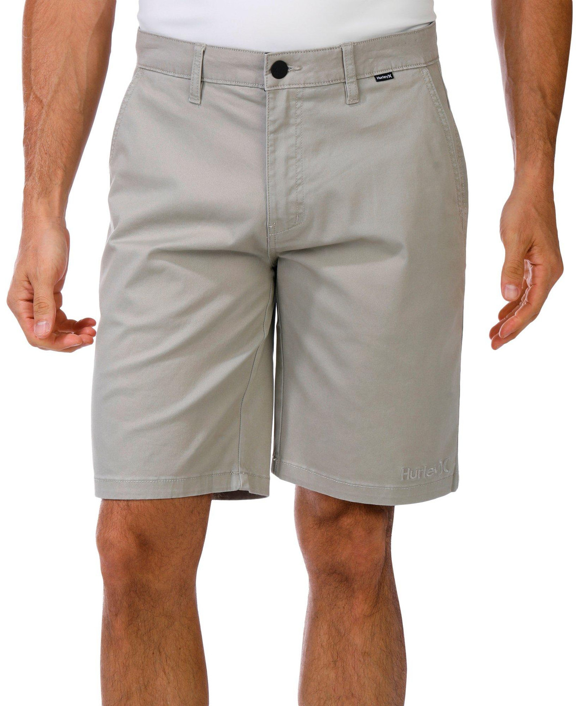 These classic twill walk shorts for men offer timeless style with a solid color design, button-fly zip closure, and practical side seam and back pockets. Belt loops provide versatility for accessorizing, while the 10 inch inseam delivers a comfortable fit perfect for everyday wear. Fabrication 97% cotton, 3% spandex