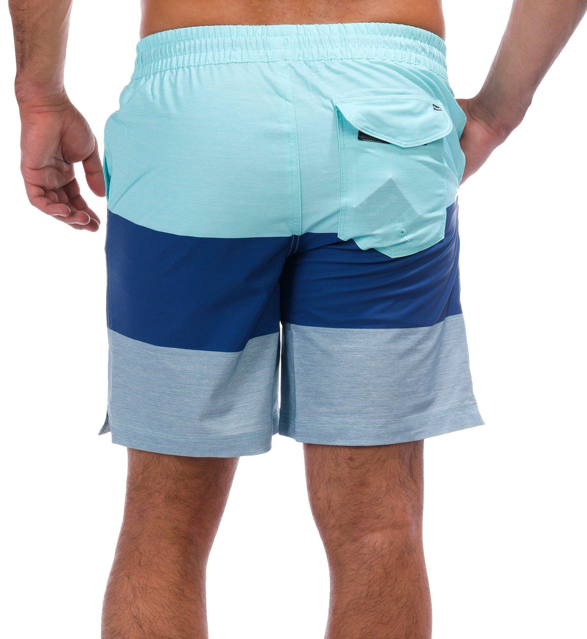 Make a statement at the shore with these Men’s Color Block Swim Shorts. Crafted from a quick-drying polyester-spandex blend, they feature a bold color block design, drawstring waistband, mesh inner lining, side pockets, and a back pocketcombining comfort, function, and standout style.