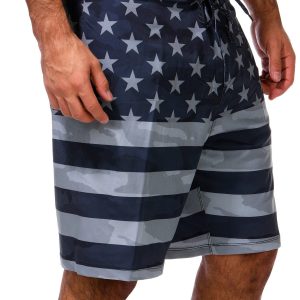 Show off your patriotic style with the Men’s Phantom Flag Print Swim Shorts. Featuring a bold flag print, adjustable drawstring waistband, and a handy back pocket, these swim shorts are perfect for pool days, beach outings, or summer celebrations. Fabrication 86% polyester, 14% spandex