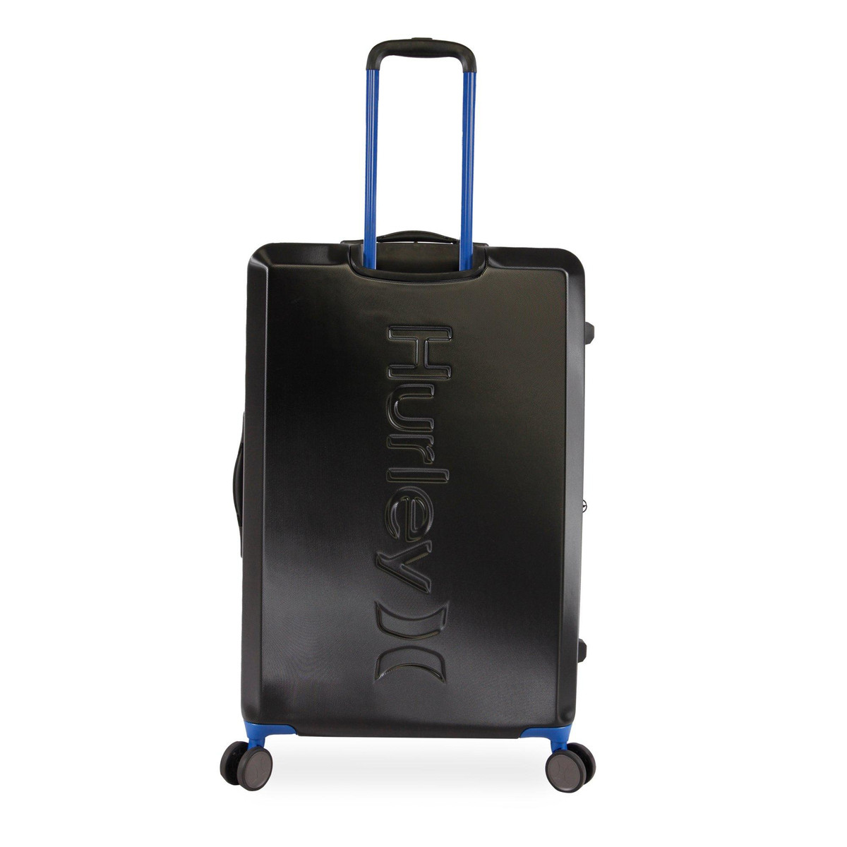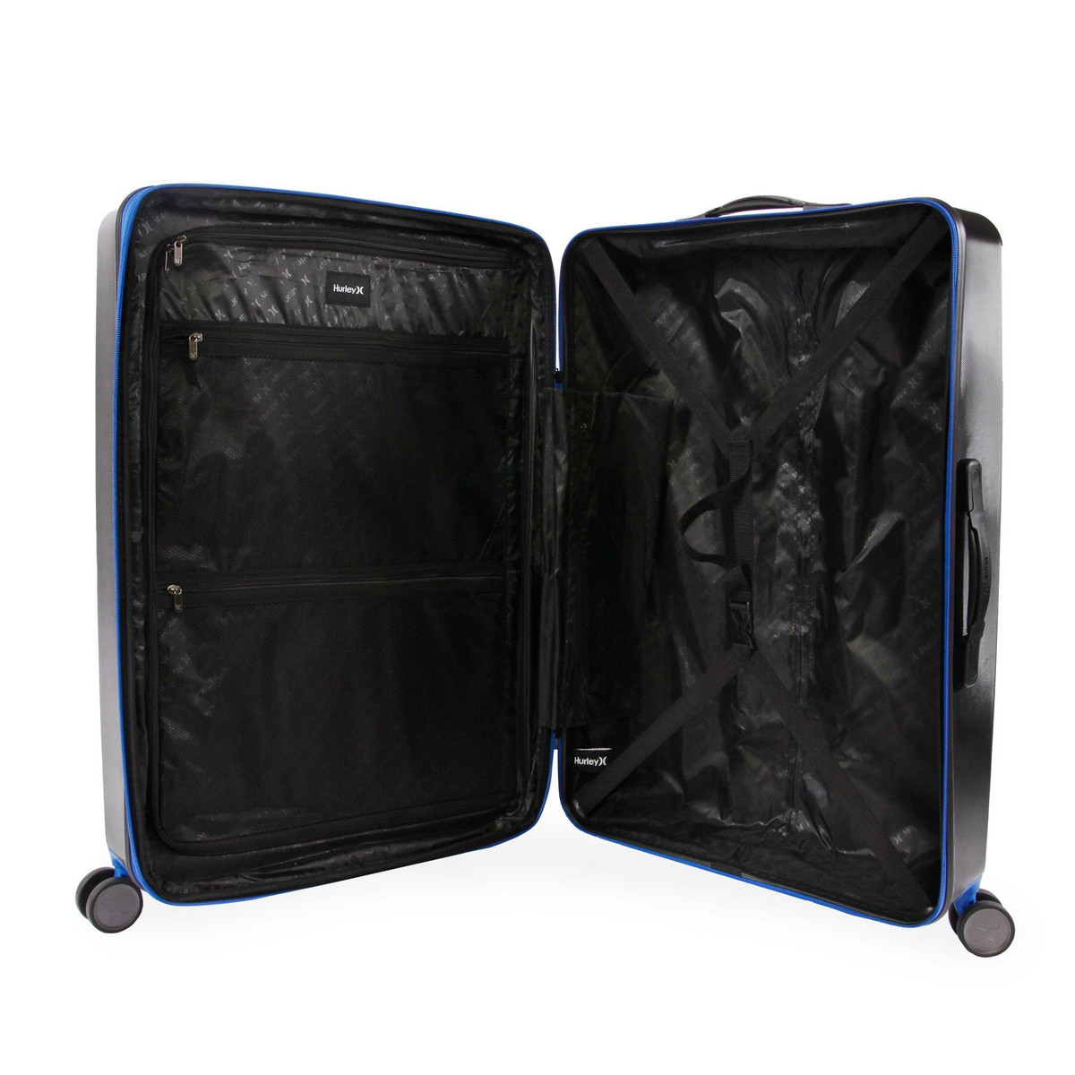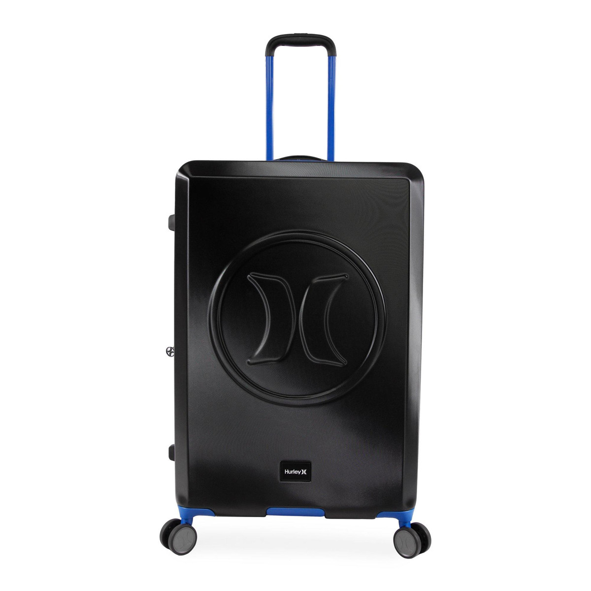 Zip through the terminal and to your destination with this hard side, spinner luggage from Hurley. Made of durable super abs hardshell technology, you’ll be at ease knowing your clothing and accessories will be safe. This luggage features push button trolley handle, is expandable which offers 25% additional capacity, top, side and bottom carrying handles for easy lifting, multiple interior compartments and interior mesh pockets and tie down straps. Suitcase measures 29 in. x 19 in. x 12.5 in.