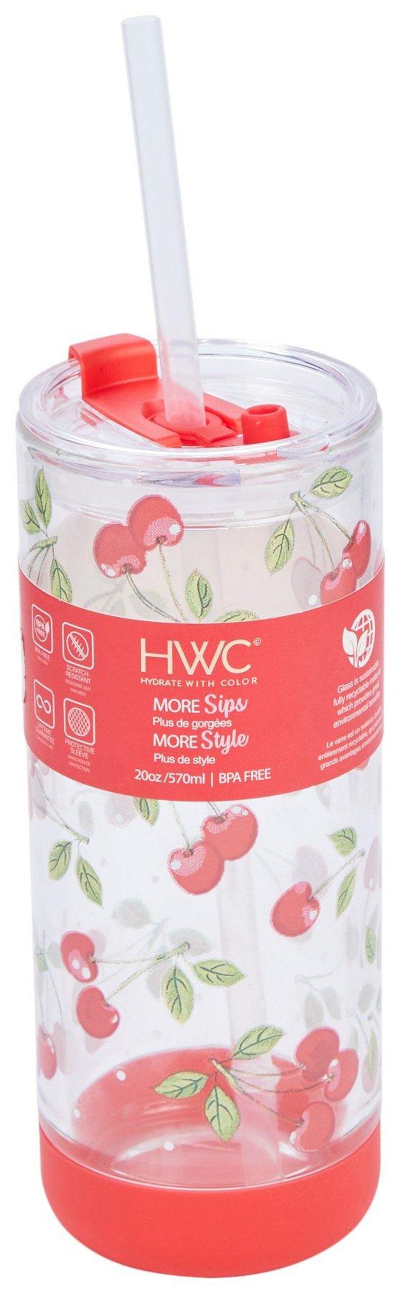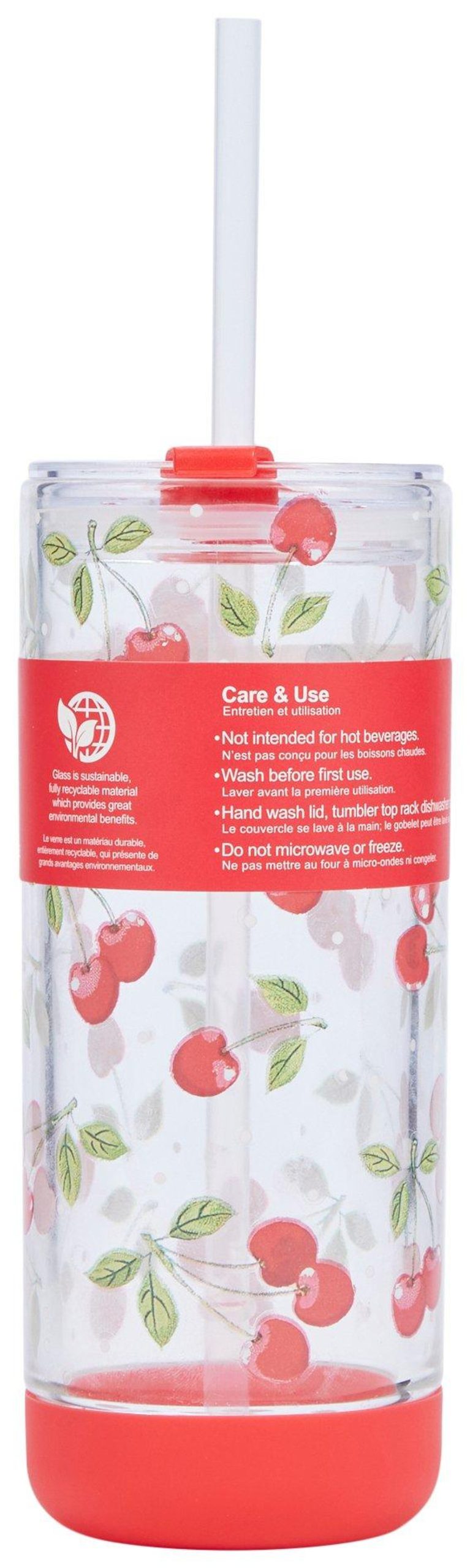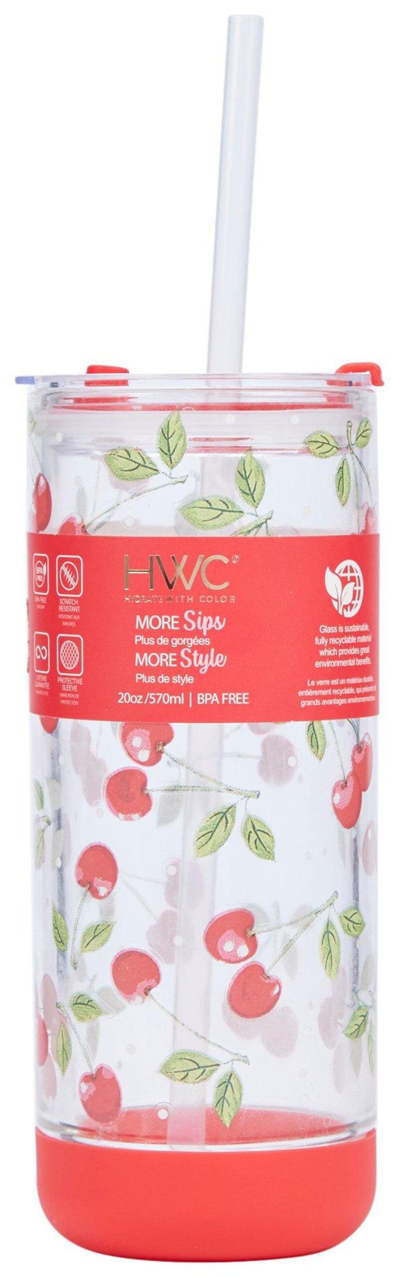 Sip in style with this 20 oz Glass Cherry Print Tumbler! Featuring a cute cherry print and straw, it is designed with scratch resistance, a BPA-free build, and a protective sleeve for on-the-go ease. Perfect for adding charm to your daily hydration!