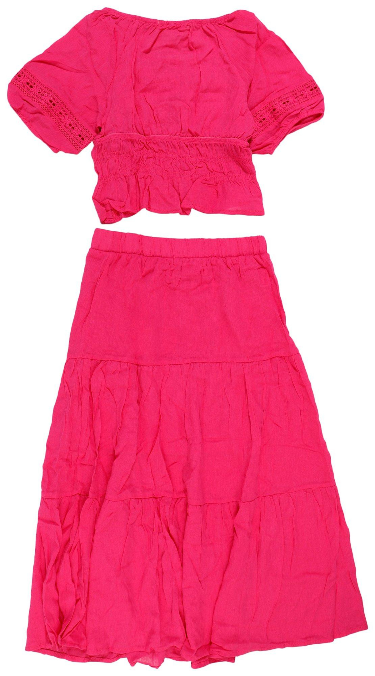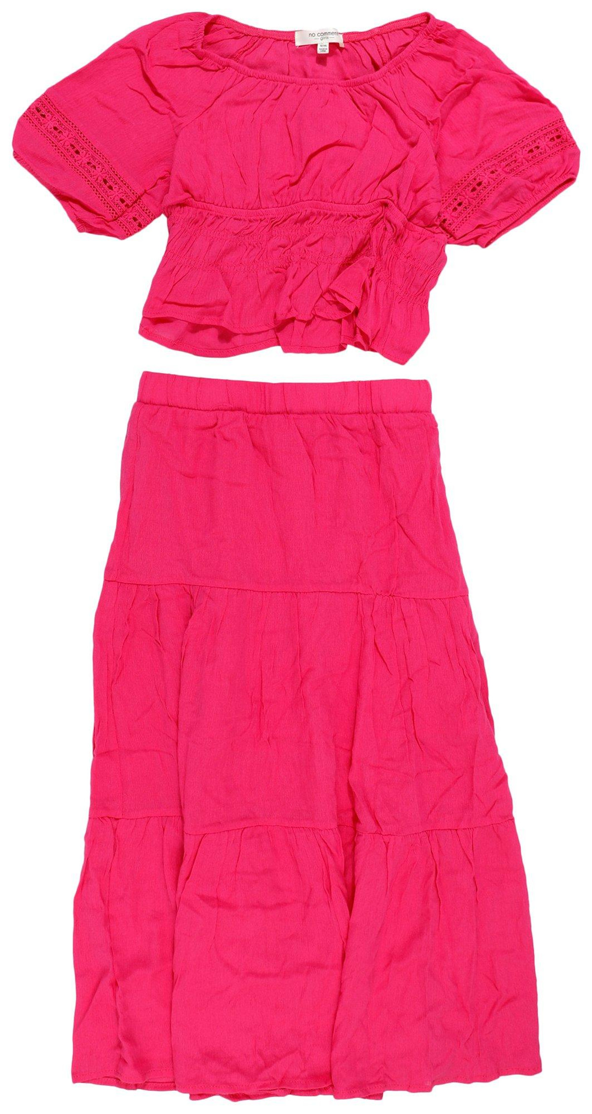 Let her bloom in style with this adorable gypsy style maxi tiered skirt & top! Featuring a beautiful fuschia purple color, this charming outfit combines comfort and cuteness, making it perfect for sunny days and casual outings.