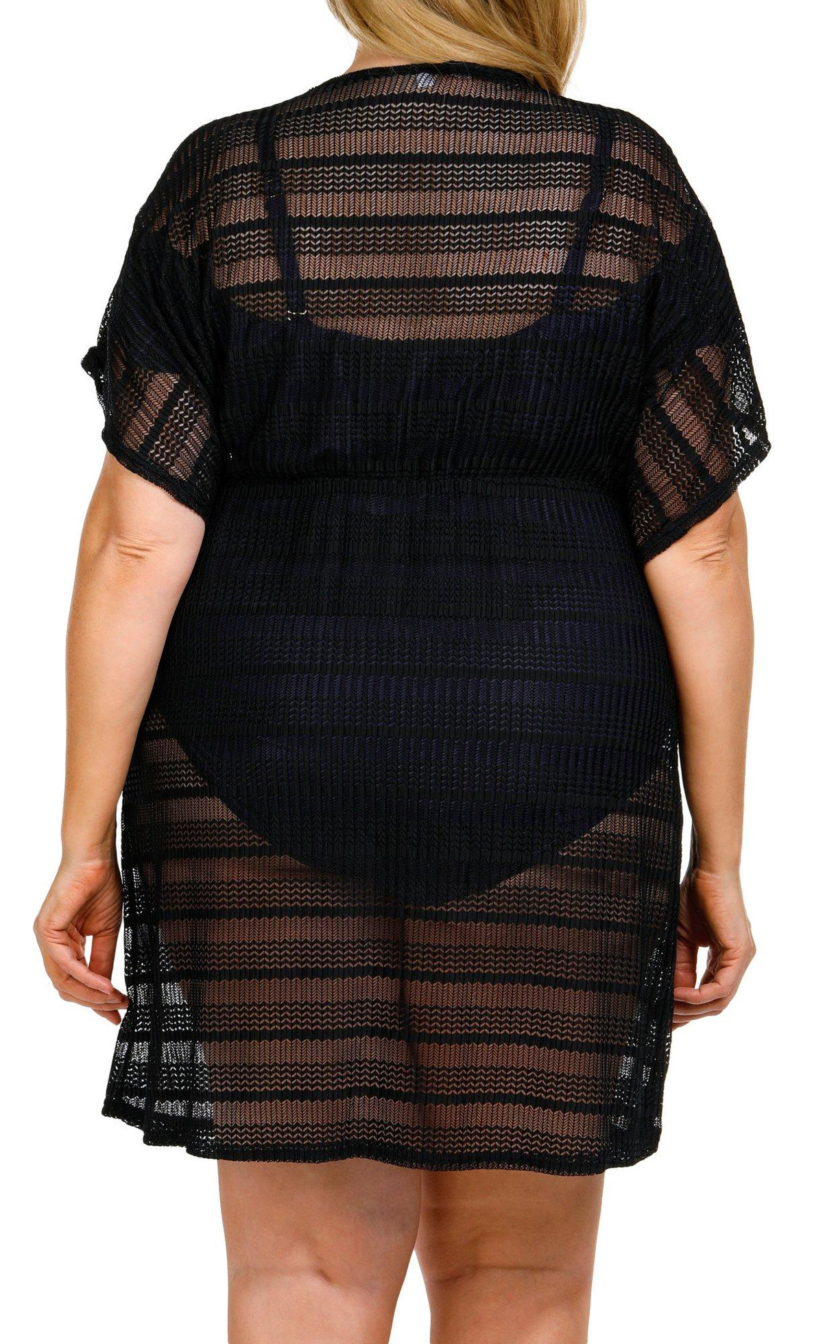 Add a touch of elegance to your beachwear with the Woven Mesh Kimono Tunic Coverup. This stylish coverup features a lightweight woven mesh fabric that provides both breathability and a chic look. The kimono-style design offers a relaxed fit, making it perfect for layering over your favorite swimwear. Fabrication 93% nylon, 7% spandex.