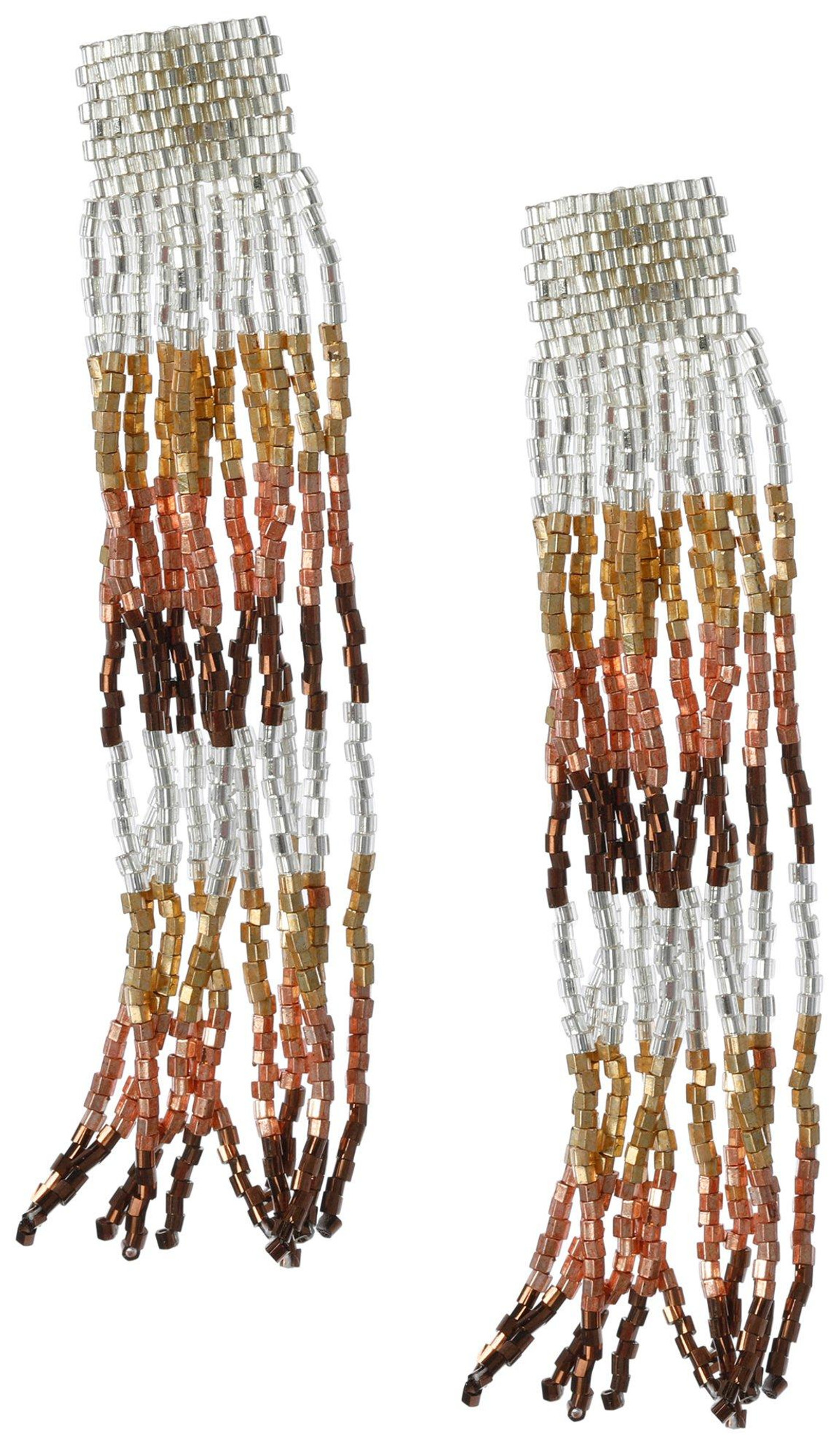 The Ink + Alloy Women’s Ila Uniform Stripes Mixed Luxe Beaded Fringe Earrings are more than just an accessory-they’re a statement. These earrings blend traditional craftsmanship with modern design, providing a perfect touch of sophistication and style for any occasion. Hypoallergenic. 3.25 in. length.