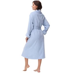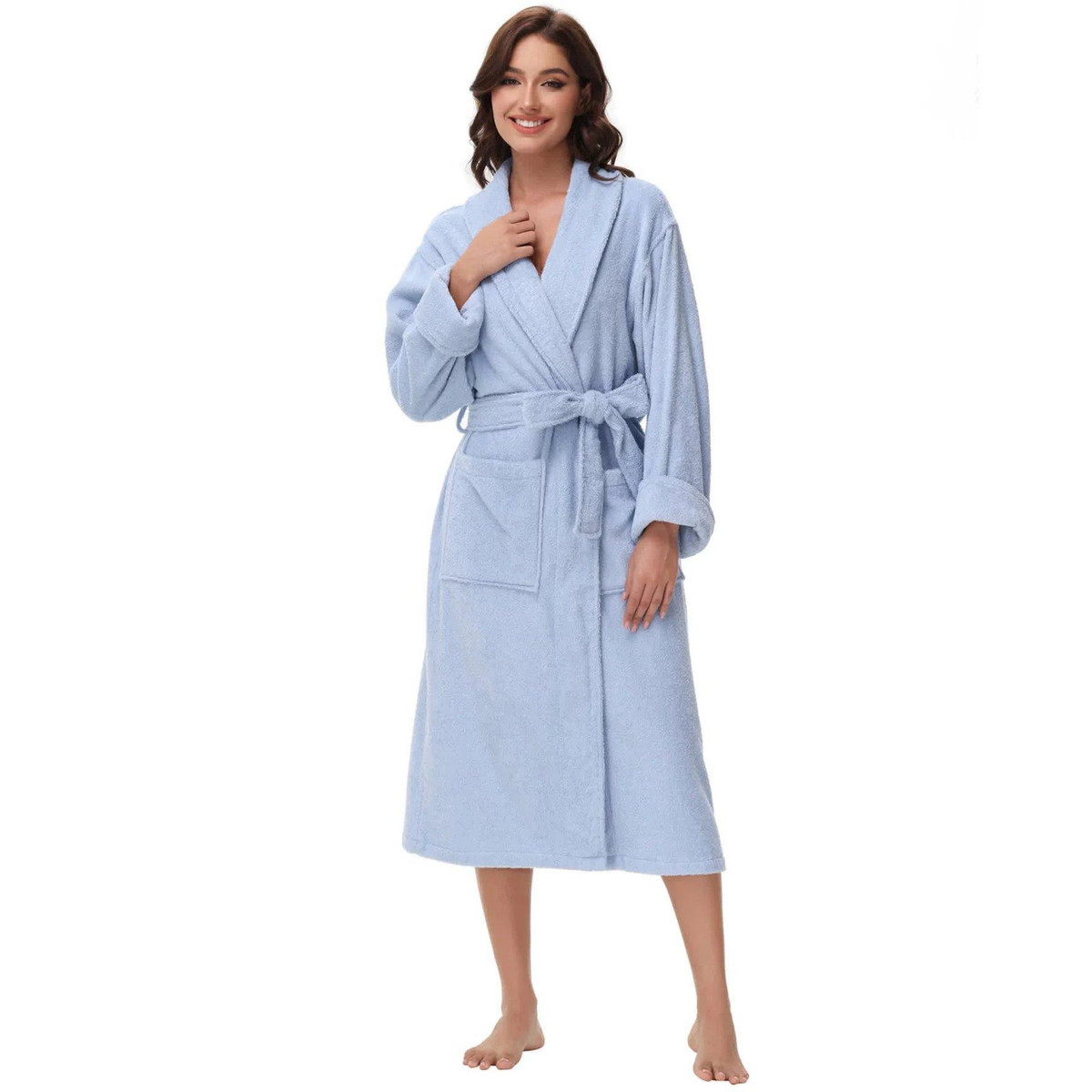 Indulge in ultimate comfort with our cozy, soft cotton terry robe. Perfect for lounging, this robe features two front pockets for convenience and a snug belt fit for added comfort. Whether you’re relaxing at home, the gym, spa, swimming pool, or hot tub, its highly absorbent and quick-dry fabric ensures you stay dry and comfortable. The relaxed styling makes it an ideal choice for unwinding after a long day. Embrace the luxury of relaxation with this must-have robe. Machine wash cold.
