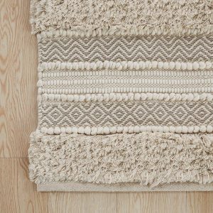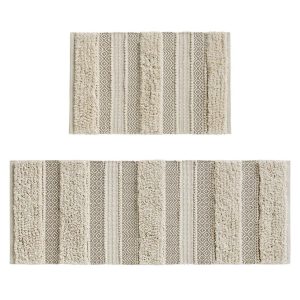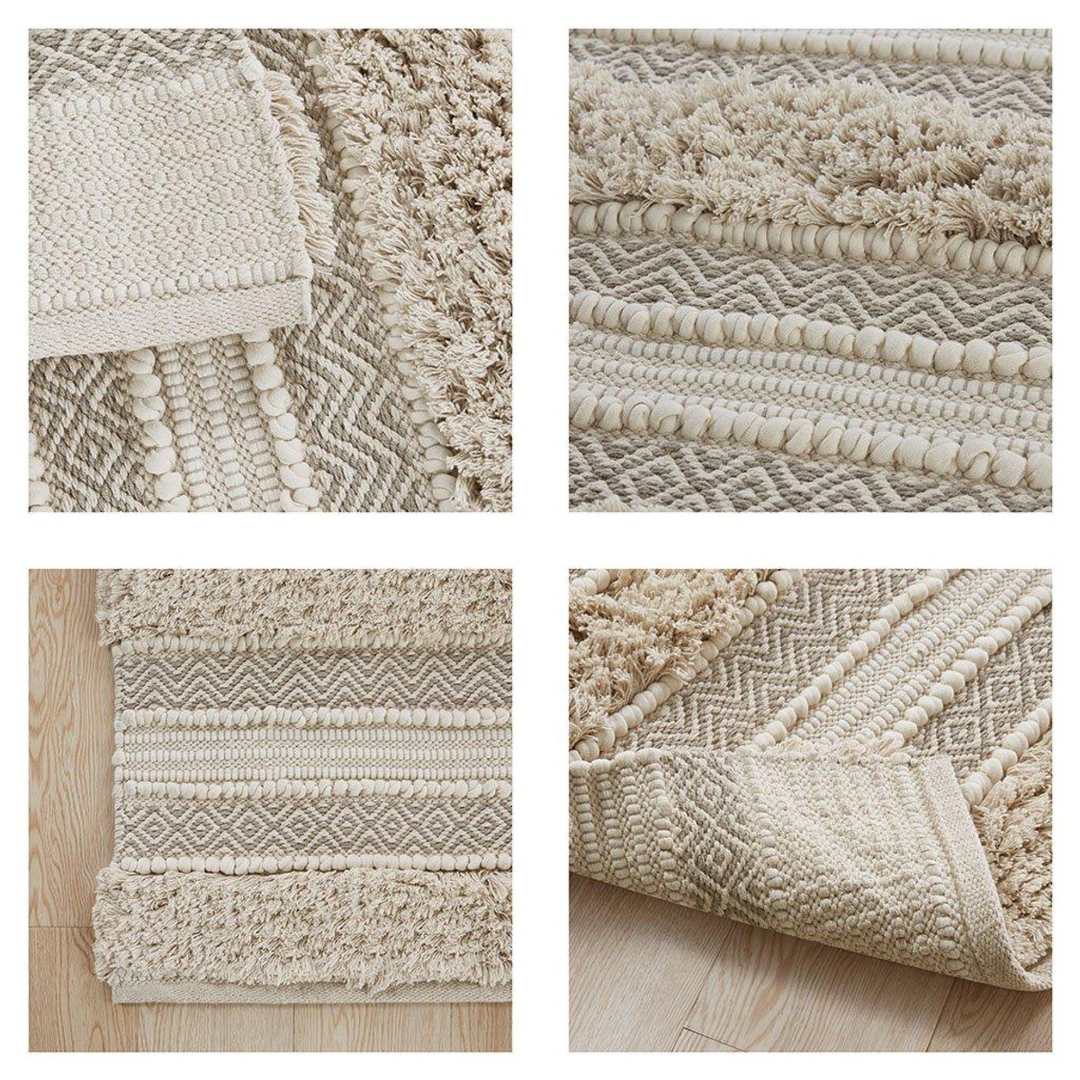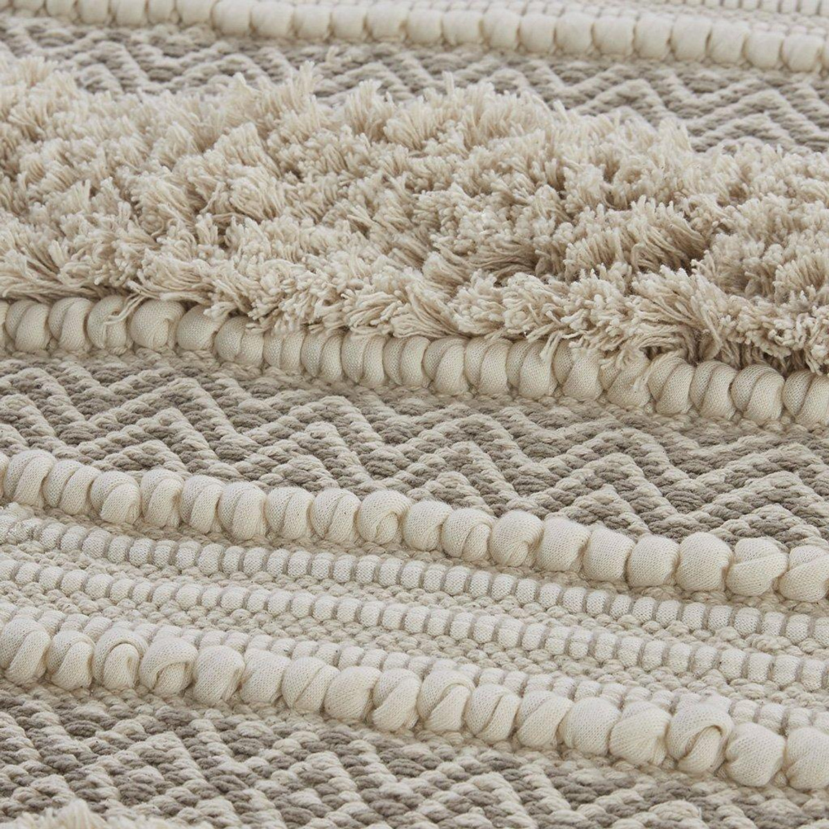Refresh your bathroom with the Ink+Ivy Asher Bath Rug. Hand-woven with shaggy textures and artisan stripe patterns, this rug blends Boho style with global charm. The soft natural hue and taupe geo accents create a unique, cozy look perfect for modern spaces. Machine washable for easy care.
