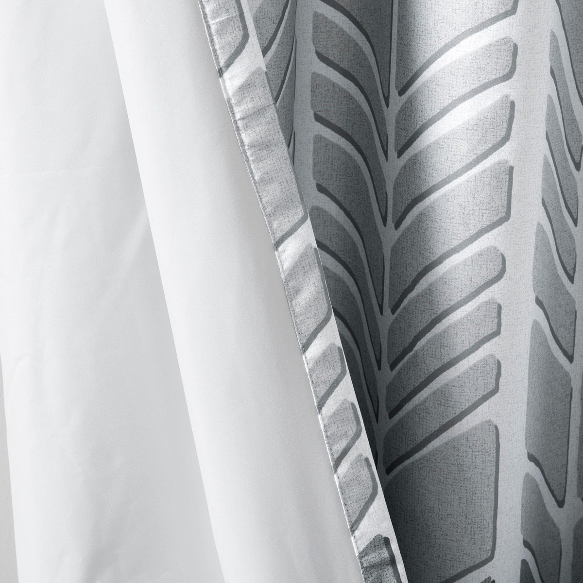 Add a casual update to your home with the Intelligent Design window curtain. This geometric chevron design uses light grey, taupe, and aqua for a unique combination of color and pattern. Added foamback lining provides superior room darkening features, added privacy, and energy efficient abilities. Fits up to a 1.25 diameter rod. Measures 50”W. Panels sold individually.