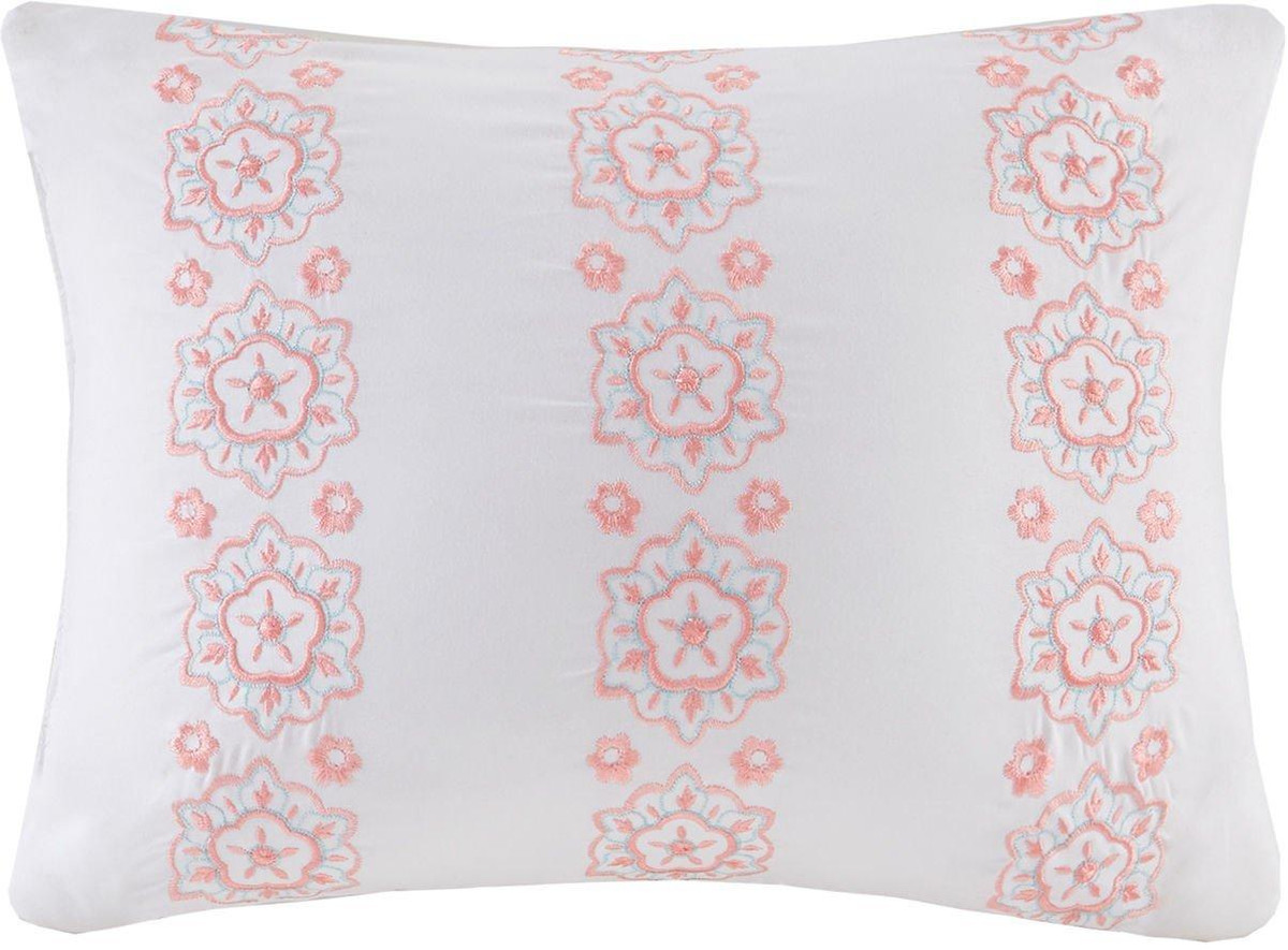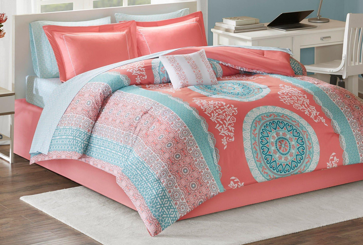 Add a touch of bold, chic patterns to your bedroom with the Intelligent Design Loretta Comforter and Sheet Set. This set features a vivid medallion design and geometric pattern sheets. Set includes one decorative pillow, one comforter, one flat sheet, one fitted sheet, one bedskirt, two pillow cases (one for twin size), and two shams (one for twin size). Bedskirt has 14” drop. Pillow measures 12”L x 16”W.