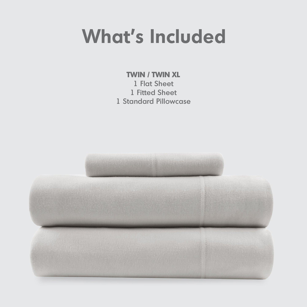 - Twin Set: 1 Flat Sheet (66 x 96) 1 Fitted Sheet (39W x76+14D) 1 Standard Pillowcase (20x 30)