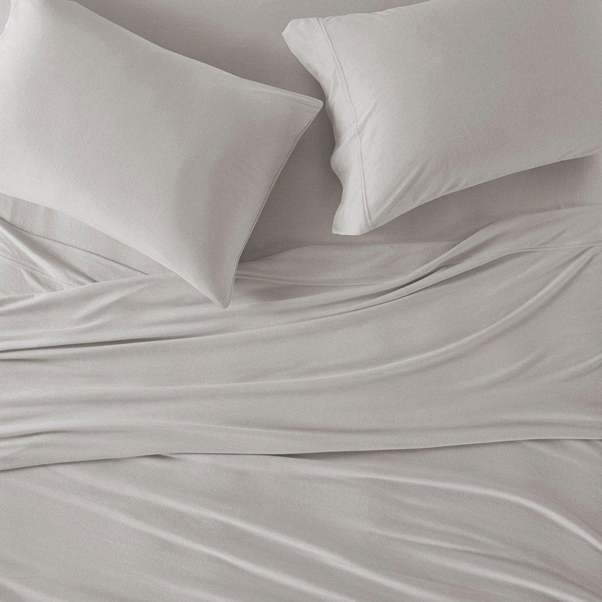 Sleep in comfort year-round with the Intelligent Design Jersey Knit Sheet Set. Made from a soft cotton blend, these sheets feel like your favorite tee – warm in winter and breathable in summer. The stretchy knit makes bed-making easy, while a range of stylish colors adds cozy charm to any bedroom. Machine washable for easy care.
