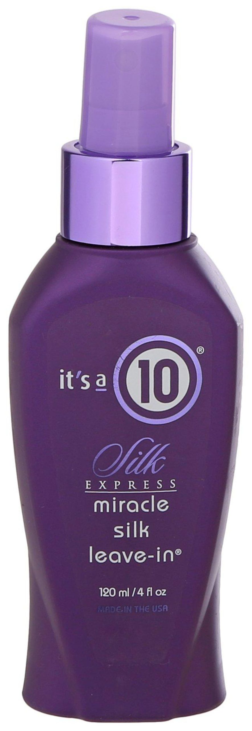 This Express Miracle Silk Leave-In provides silkiness, cuts down drying time, enhances body, helps protect color, and is build-up free. Best if used within 12 months of opening. Contains 4 fl.oz.