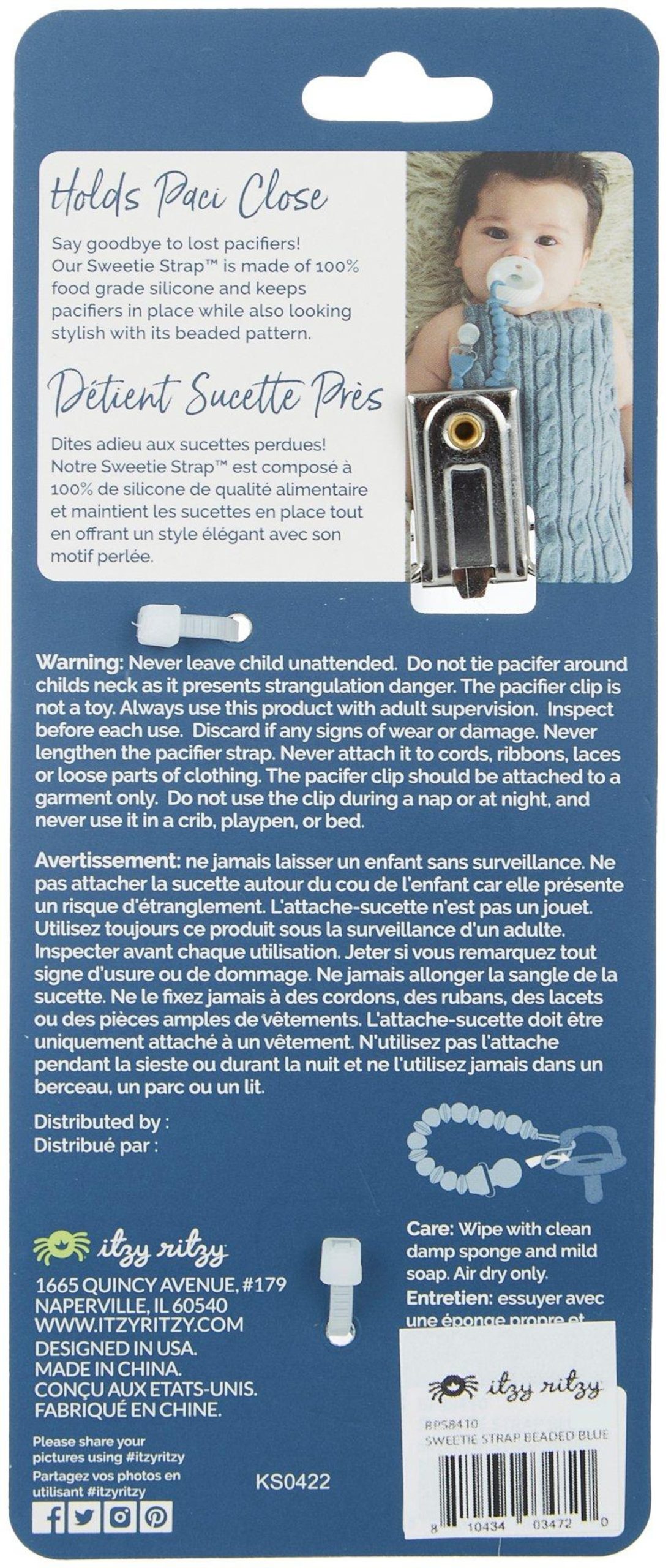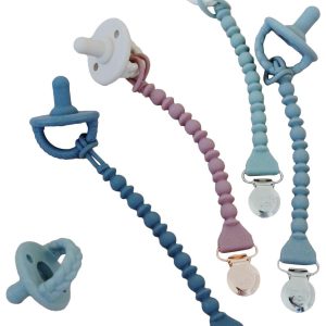 This clip and go beaded sweetie strap pacifier features a unique design, and soft & durable silicone pacifier clip. Recommended age: 0 months+.