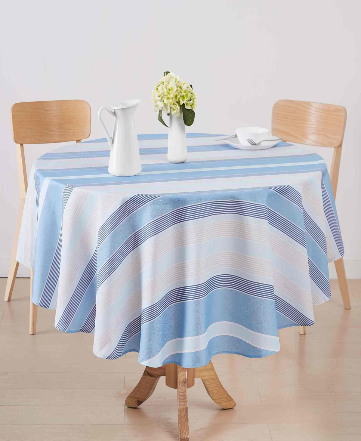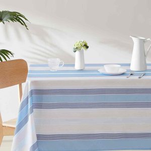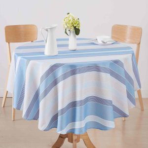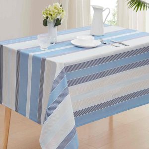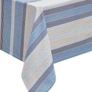 Enhance your dining experience with the Izod Breakers Stripe Tablecloths. Featuring a contemporary design, they are perfect for both everyday use and special occasions, for a versatile addition to your home decor.The water-resistant fabric ensures durability and easy maintenance, while its functional design brings a touch of elegance to family gatherings and friendly get-togethers. Fabrication 100% polyester.