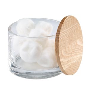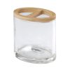 Refresh your bathroom décor with the Izod Cove Clear Glass Decorative Jar. It features a nicely weighted clear glass round body with a natural color wood removable top. It adds an updated look to any bathroom, bedroom or office. Measures 4.25 in. x 4.25 in. x 3.46 in. Other matching pieces available.