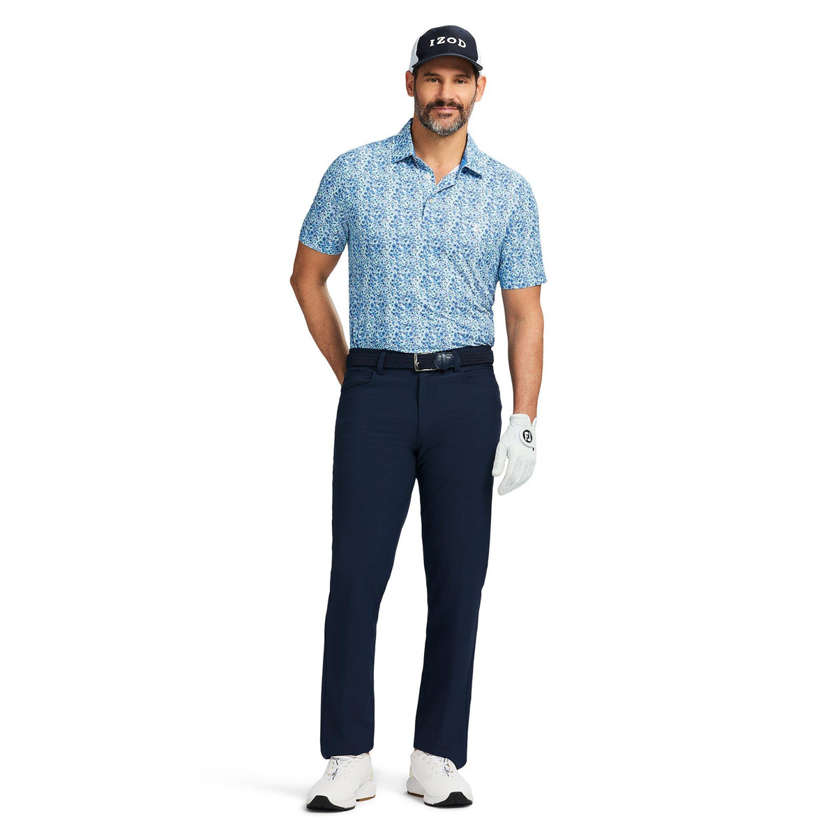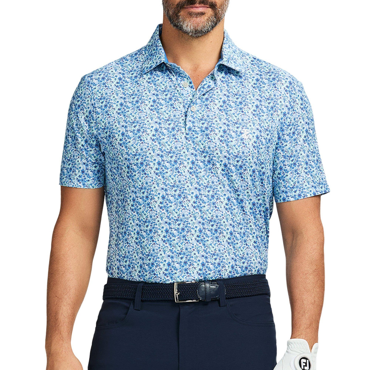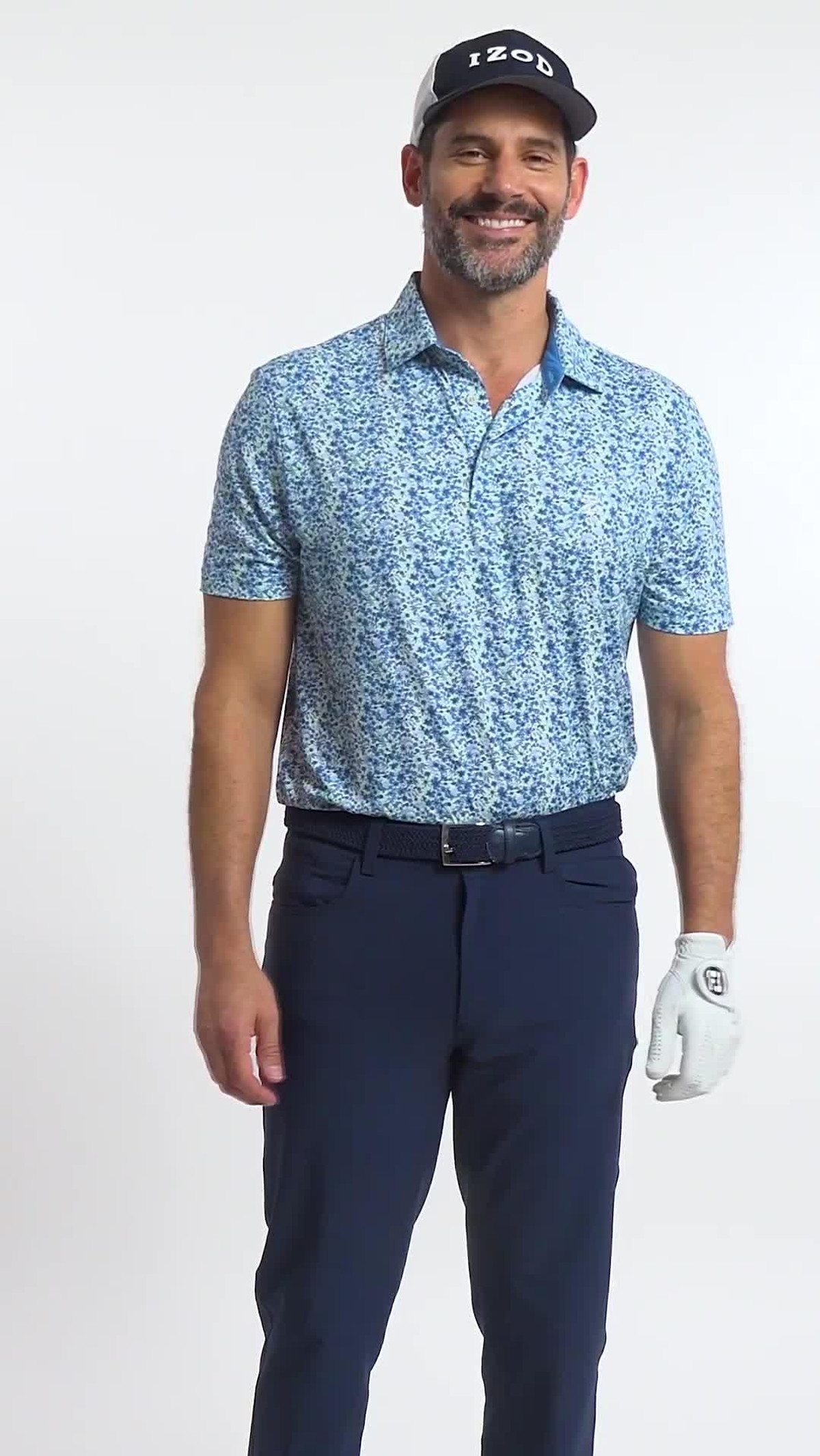 IZOD Mens Swingflex Floral Blues Short Sleeve Golf Polo