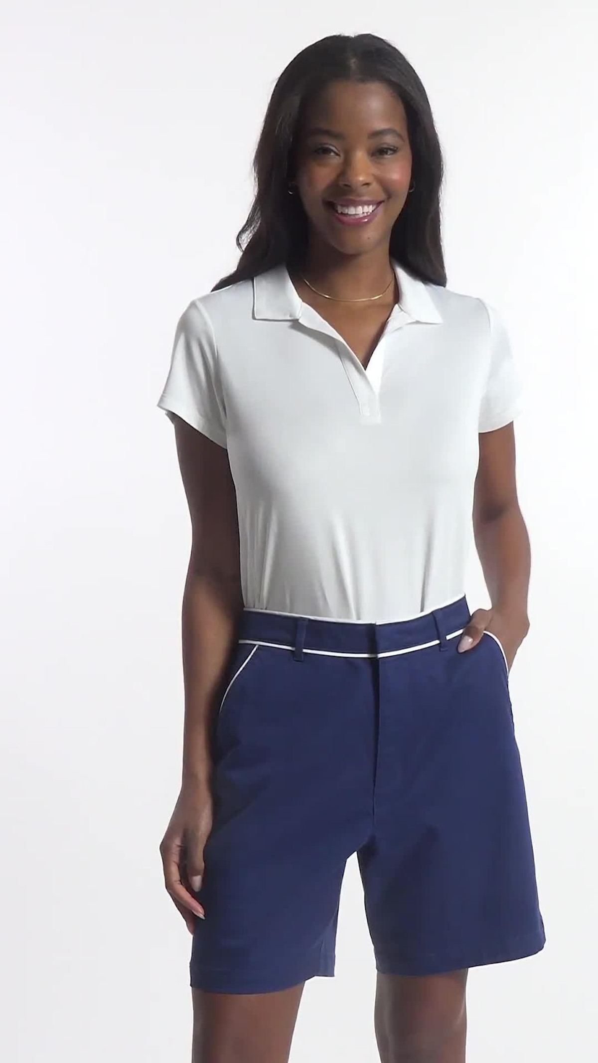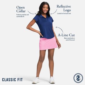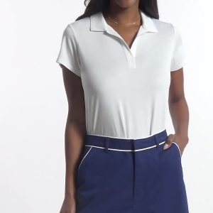 This short sleeve polo is made to move with you, whatever your day brings. The heathered jersey fabric has a natural stretch, so it stays comfortable and keeps its shape wear after wear. With moisture-wicking, quick-drying, and UPF-50 sun protection, its ready for anythingfrom a sunny morning walk to a casual afternoon out. Thoughtful details like shaped princess seams and a curved hem give it a flattering, feminine fit. Plus, its machine washable for easy care. 88% polyester, 12% elastane.