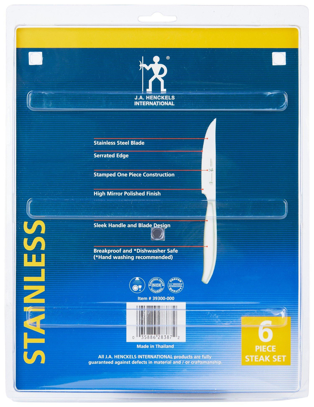 Upgrade your dining essentials with this 6 Pk Steak Knife Set, featuring stainless steel blades with serrated edges and stamped one-piece construction. Finished with a high mirror polish and sleek handle and blade design for refined style. Breakproof and dishwasher safe, though hand washing is recommended to maintain quality.