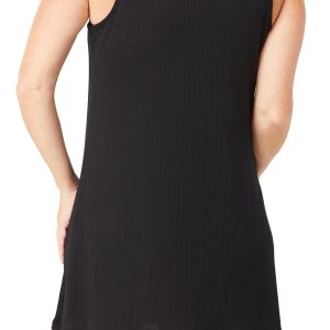 Effortless style meets comfort in this sleeveless tank coverup dress. Designed with chic ring accents and a flattering stretch fit, it layers perfectly over swimwear for poolside lounging or beach strolls. Lightweight fabric keeps you cool while the sleek silhouette adds a touch of modern flair. Ideal for travel, resort wear, or sunny weekends. Fabrication is 95% polyester and 5% spandex.