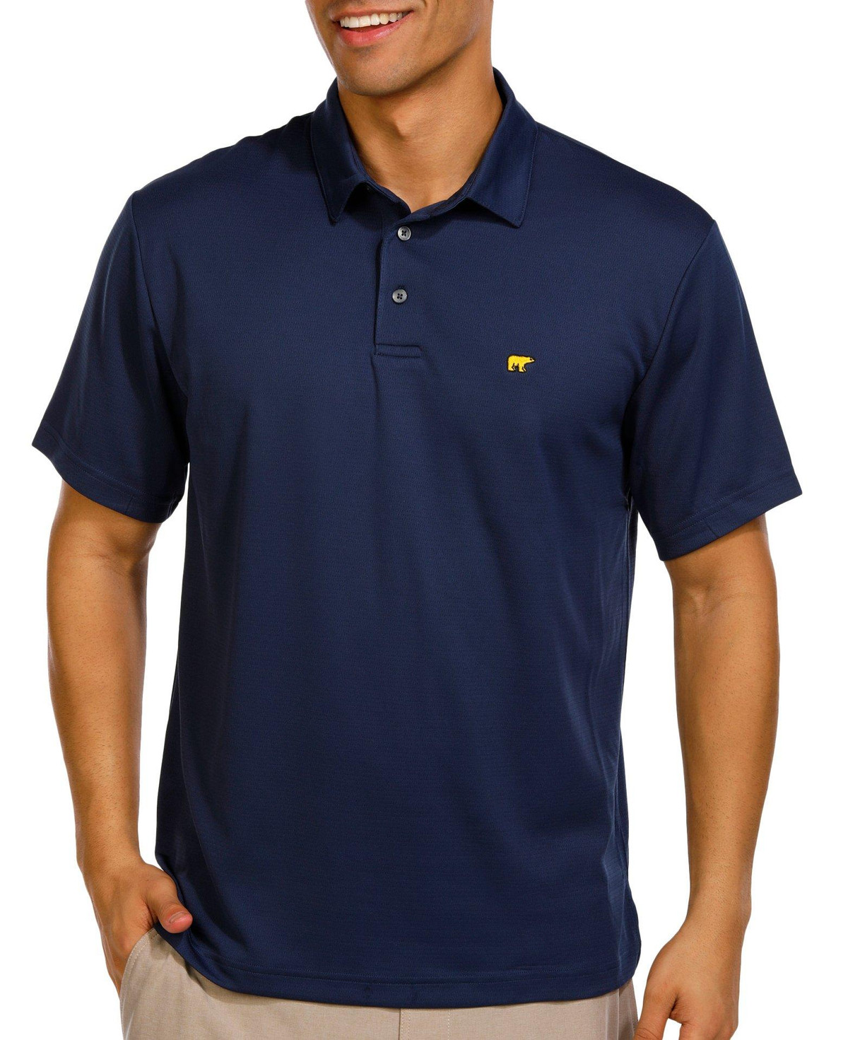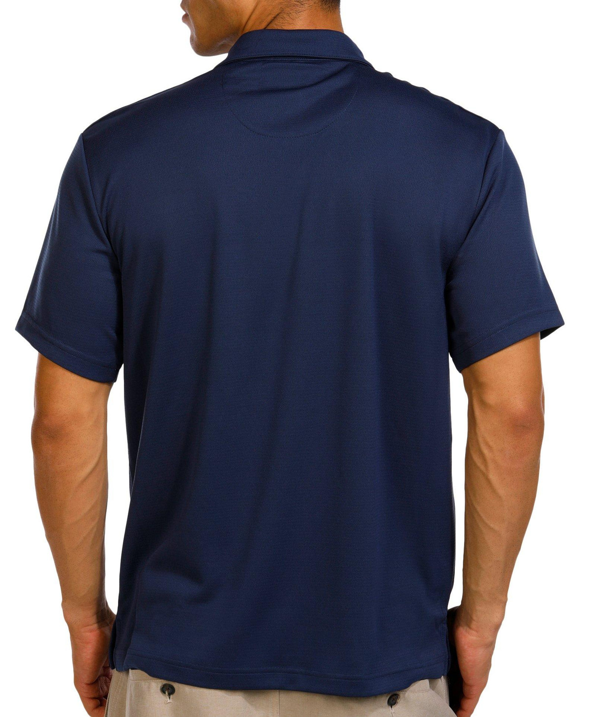 Stay sharp and protected in the Men’s Solid Textured Polo Shirt. Featuring a perforated exterior and solid color, this polo offers short sleeves, a classic neckline, and an embroidered chest logo. Built with moisture-wicking fabric, UPF 40 protection, and enhanced stretch for all-day performance and comfort. Fabrication 100% polyester.