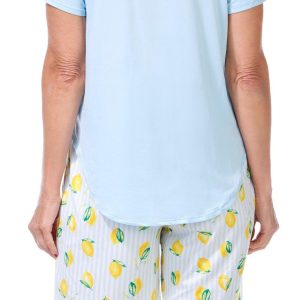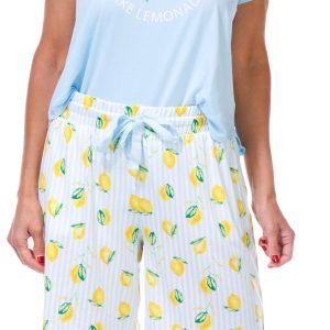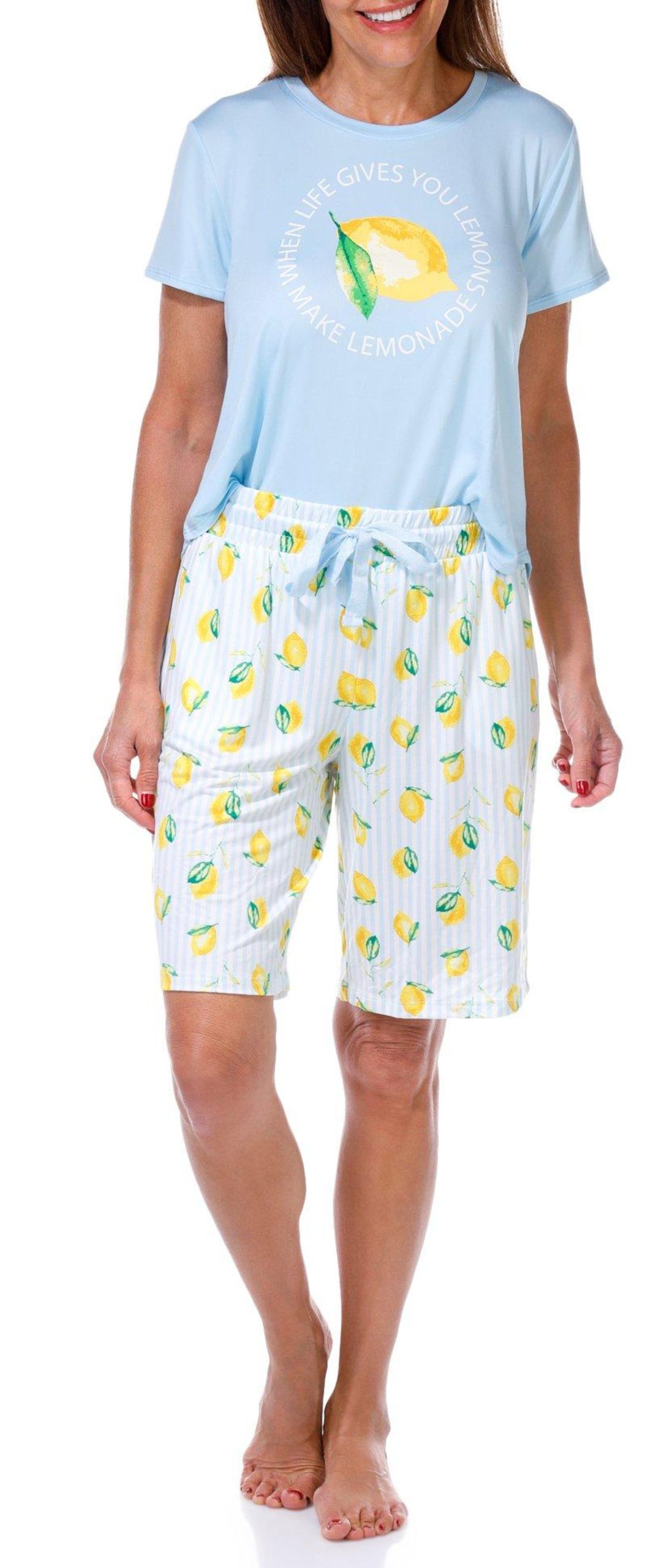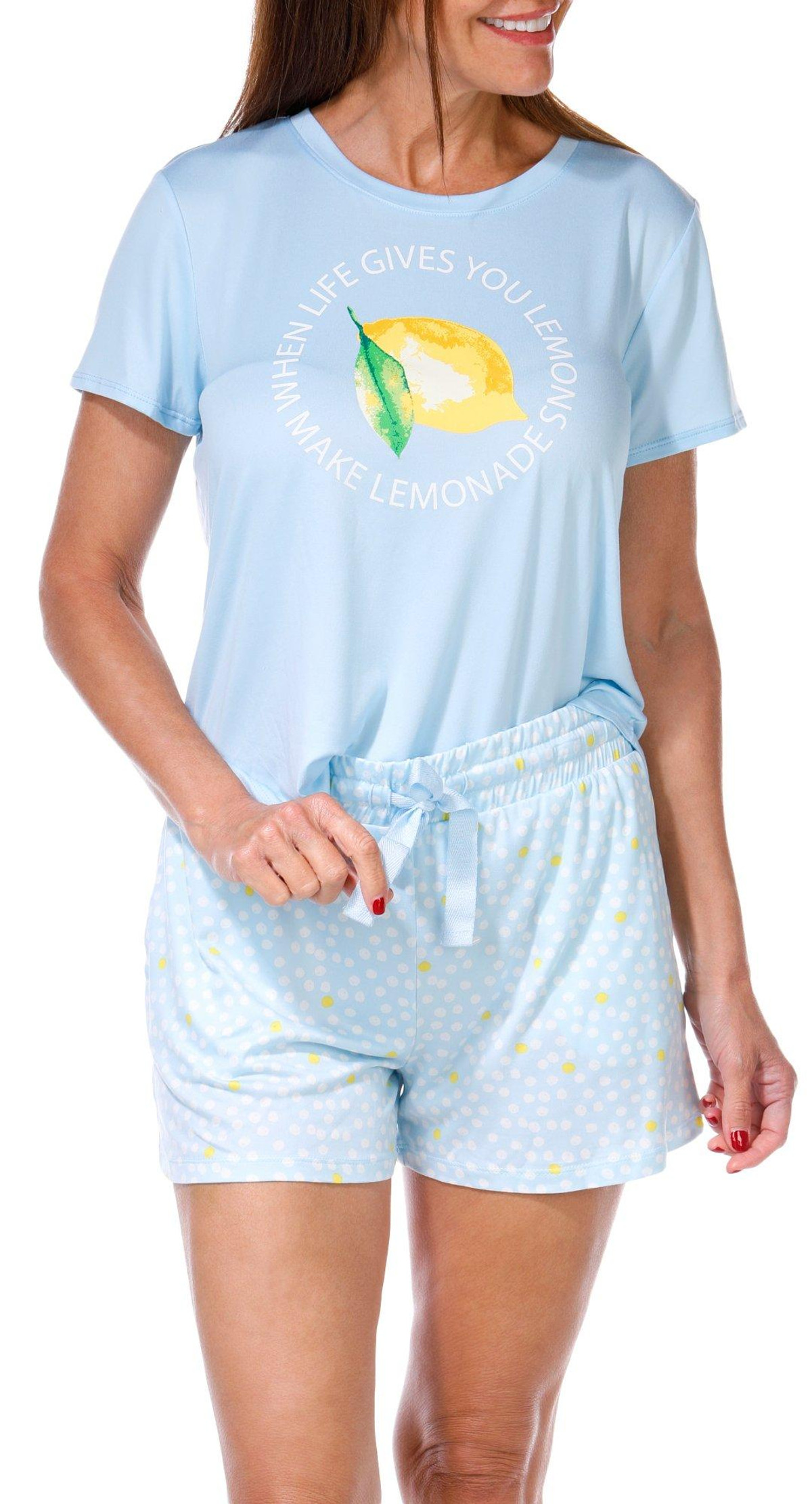 Brighten your bedtime with our Women’s 3 Pc Lemon Print Sleepwear Set. Featuring a fun graphic top and two pairs of coordinating shorts, this cheerful set offers playful style and comfy versatility. Fabrication is 95% polyester, 5% spandex
