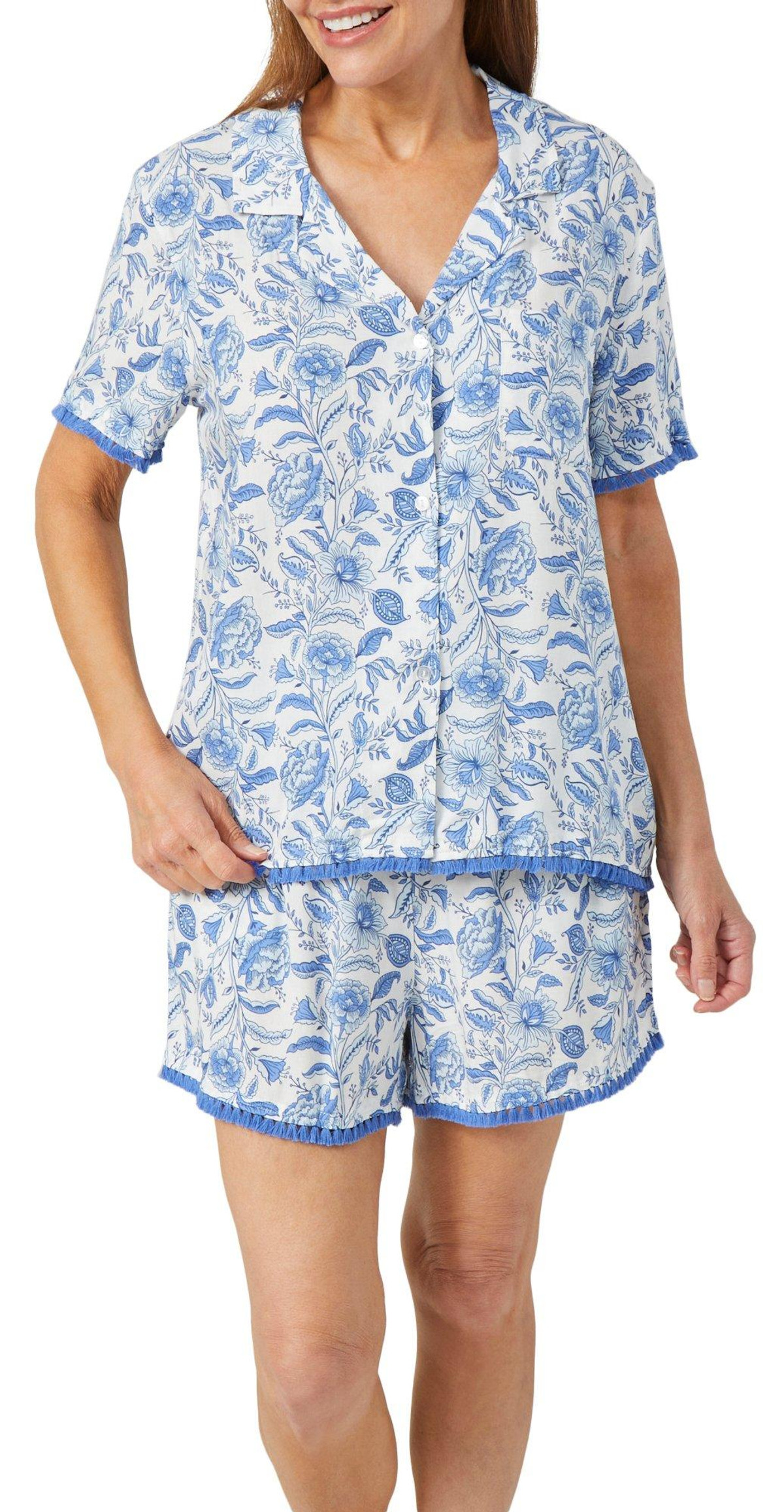 Unwind in style with the Women’s 2 Pc Short Sleeve Cardamon Floral Pajama Set. This lightweight set features a soft, breathable fabric and a stylish design, perfect for warm nights. The relaxed fit ensures all-night comfort and effortless elegance.