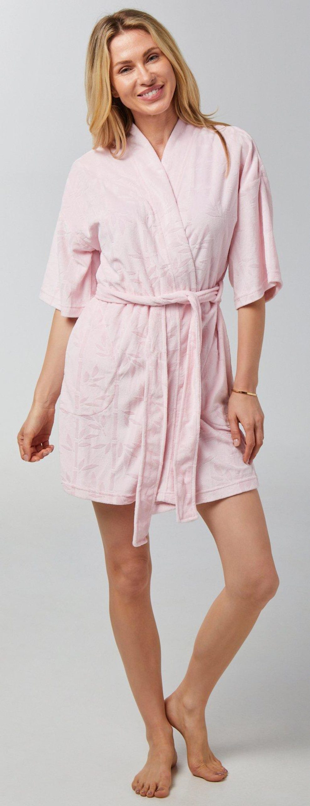 Wrap yourself in luxury with our Pique Wrap Kimono Robe. This solid color robe features a classic wrap-style with a waist tie for a secure and adjustable fit. The design adds a touch of elegance, while the super soft texture ensures you stay cozy and comfortable. Perfect for lounging at home or after a relaxing bath, this robe combines style, comfort, and a hint of charm. Length measures approximately 36 in.
