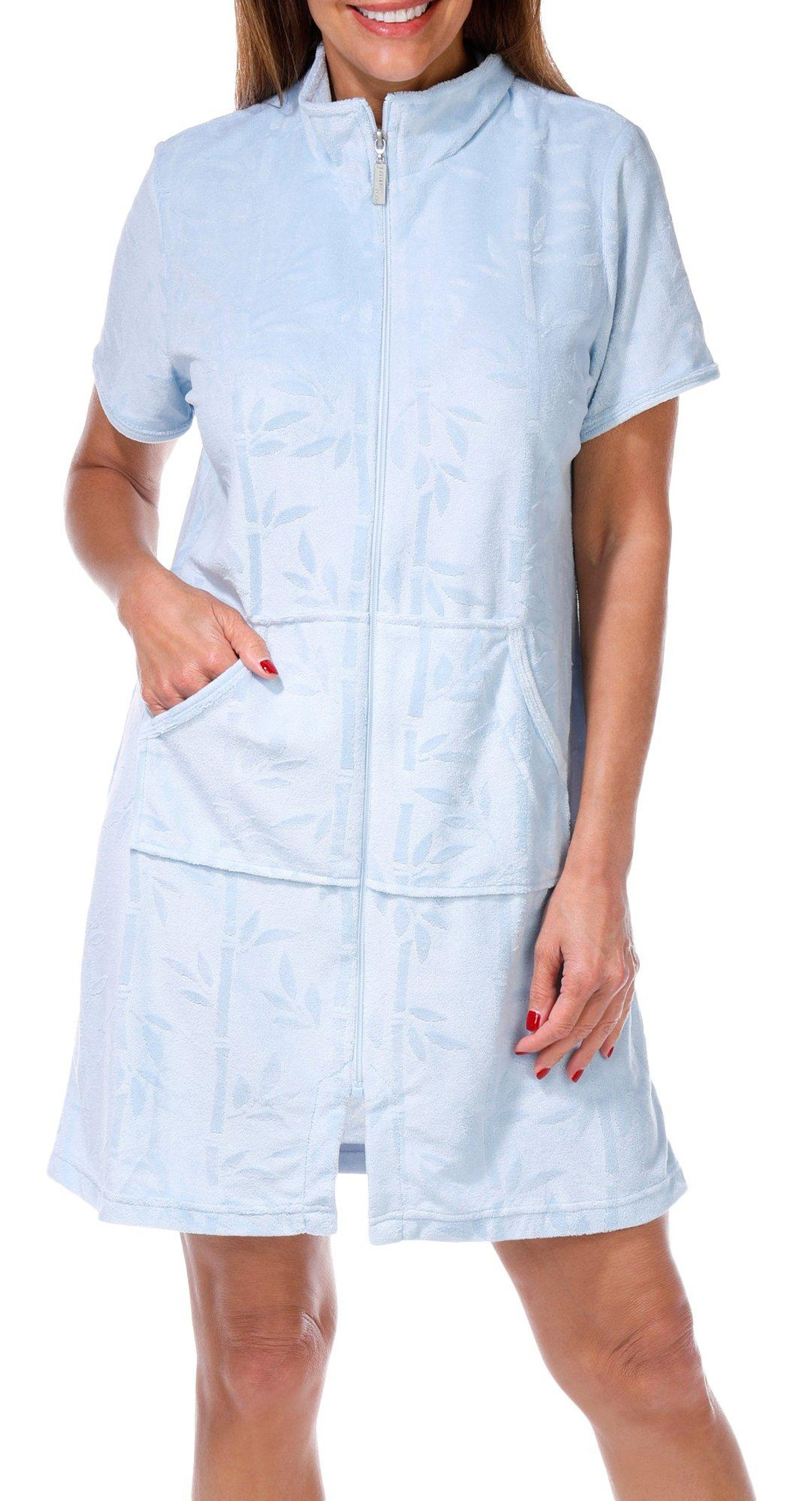 Wrap yourself in comfort with our Women’s 36 in Notch Collar Zip Up Robe. Featuring a soft botanical print, zip-up front closure, side pockets, and a flattering 36-inch length, this robe blends cozy ease with timeless style. Fabrication 100% polyester