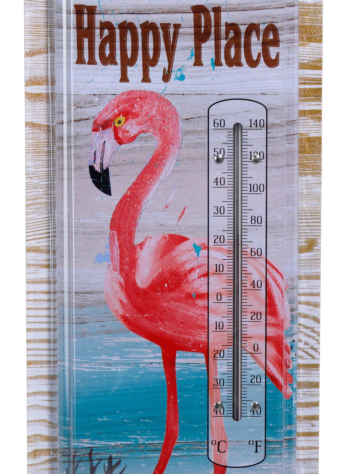 Introducing the Outdoor Flamingo Thermometer, featuring a durable metal design and weather-resistant finish. Perfect for adding a touch of coastal charm to your outdoor space while reliably measuring the temperature. Ideal for Flamingo lovers and garden enthusiasts! Measures 17.5” x 5.25”.