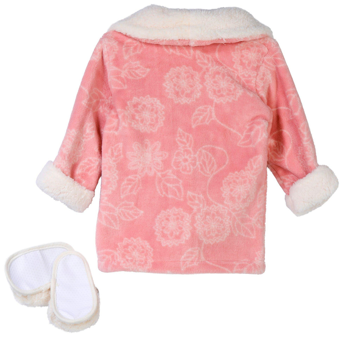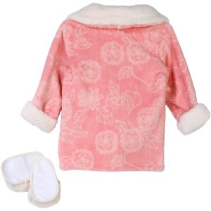 This Baby Bath Robe and Slipper Set is designed for ultimate comfort and warmth after bath time and is made from soft, absorbent fabric. Perfect for newborns up to 9 months, it’s gentle on sensitive skin and provides a snug, comfortable fit for post-bath relaxation. Fabrication is 100% polyester.