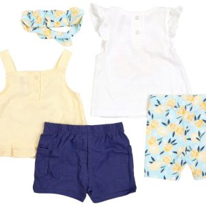 Wrap your little one in sweet charm with this 2-piece Baby Romper and Shorts Set. Made from a soft cotton/spandex blend, the romper features a solid color, ruffled shoulders, back snaps and easy-snap bottom for quick diaper changes. The shorts feature a gingham pattern and a cute bow accros the front, which adds a touch of sunshine-ready style. Perfect for cozy comfort and picture-perfect days. Fabrication is 96% cotton, 4% spandex.