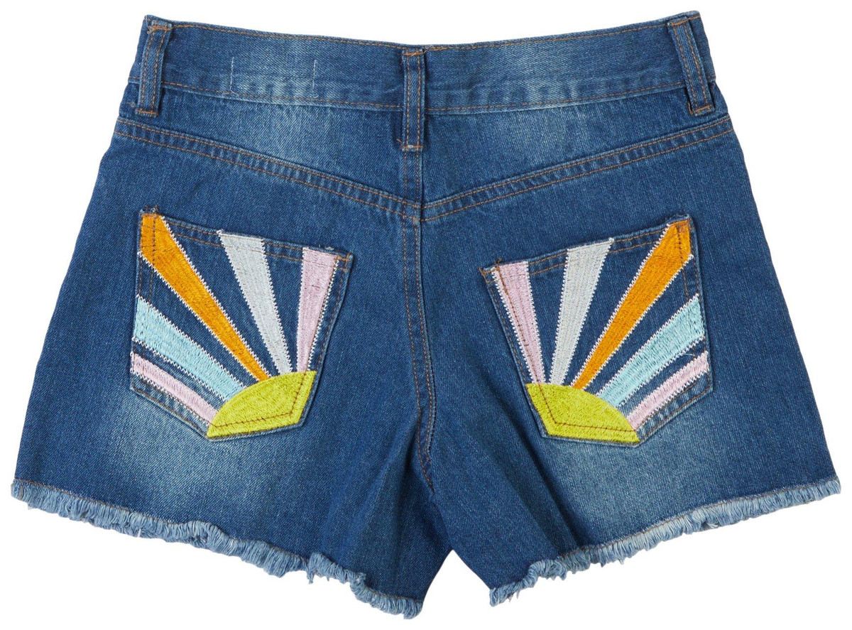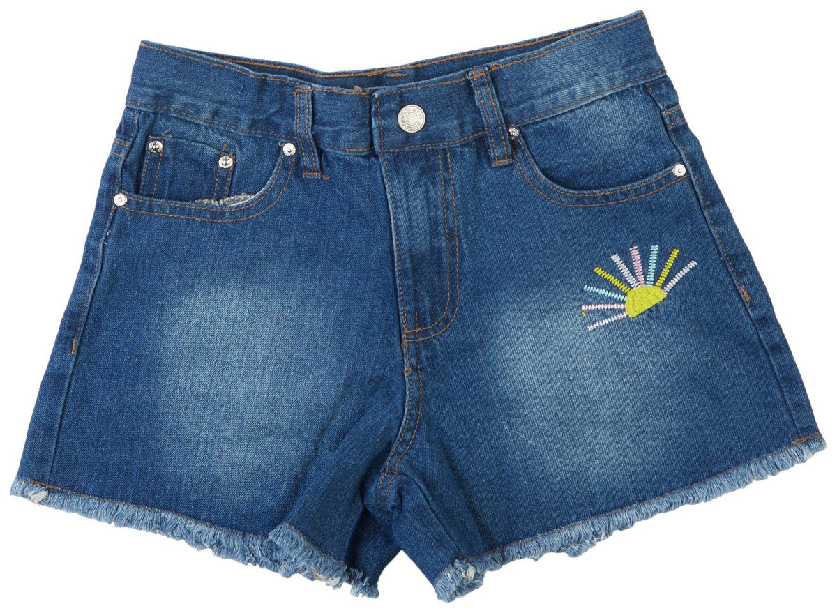 Add a sunny touch to her wardrobe with the Jessica Simpson Big Girls Denim Shorts, designed with a classic five-pocket style and embroidered sun details on the pockets. Crafted for comfort and everyday versatility. Ideal for casual outings, school, and warm-weather play.