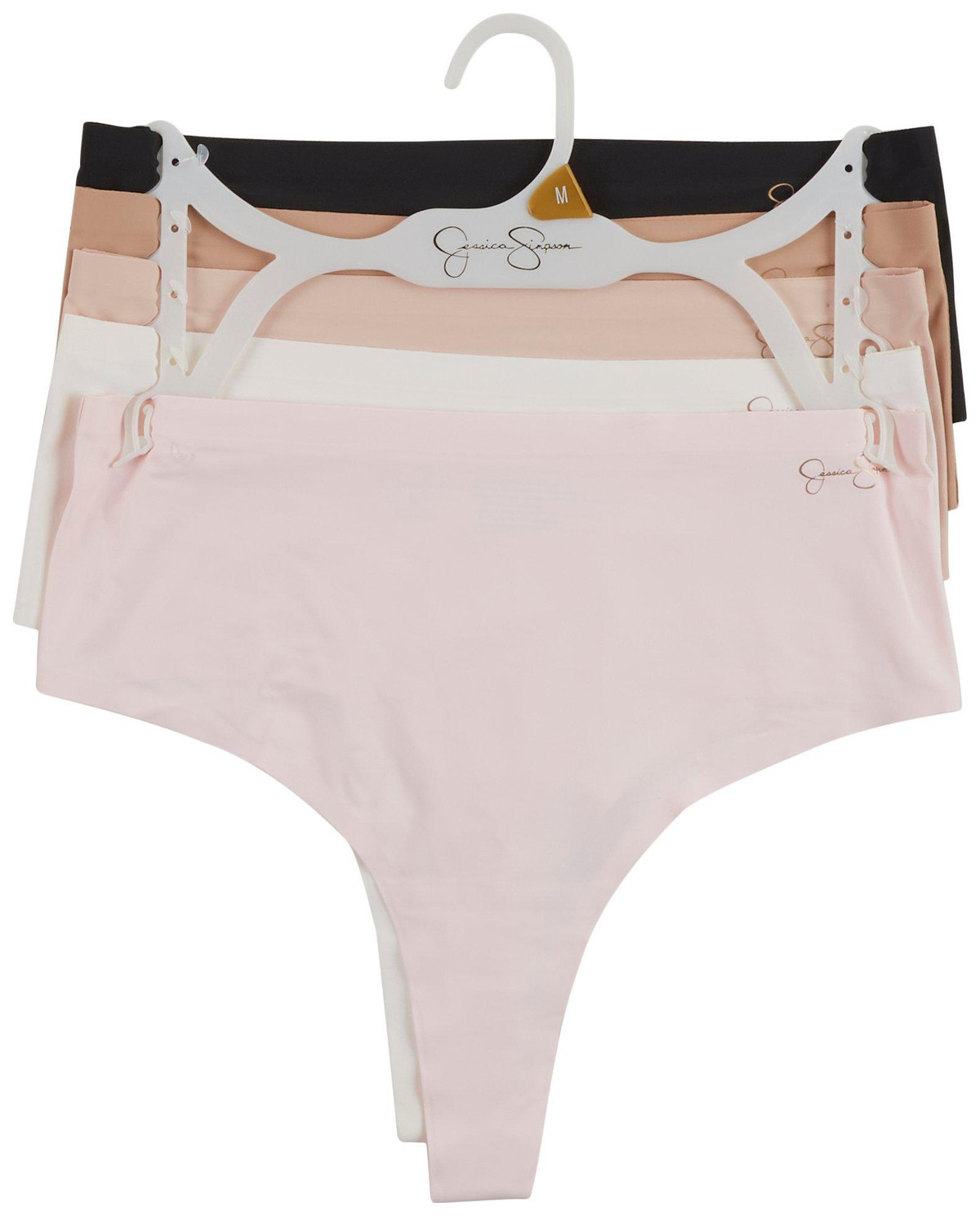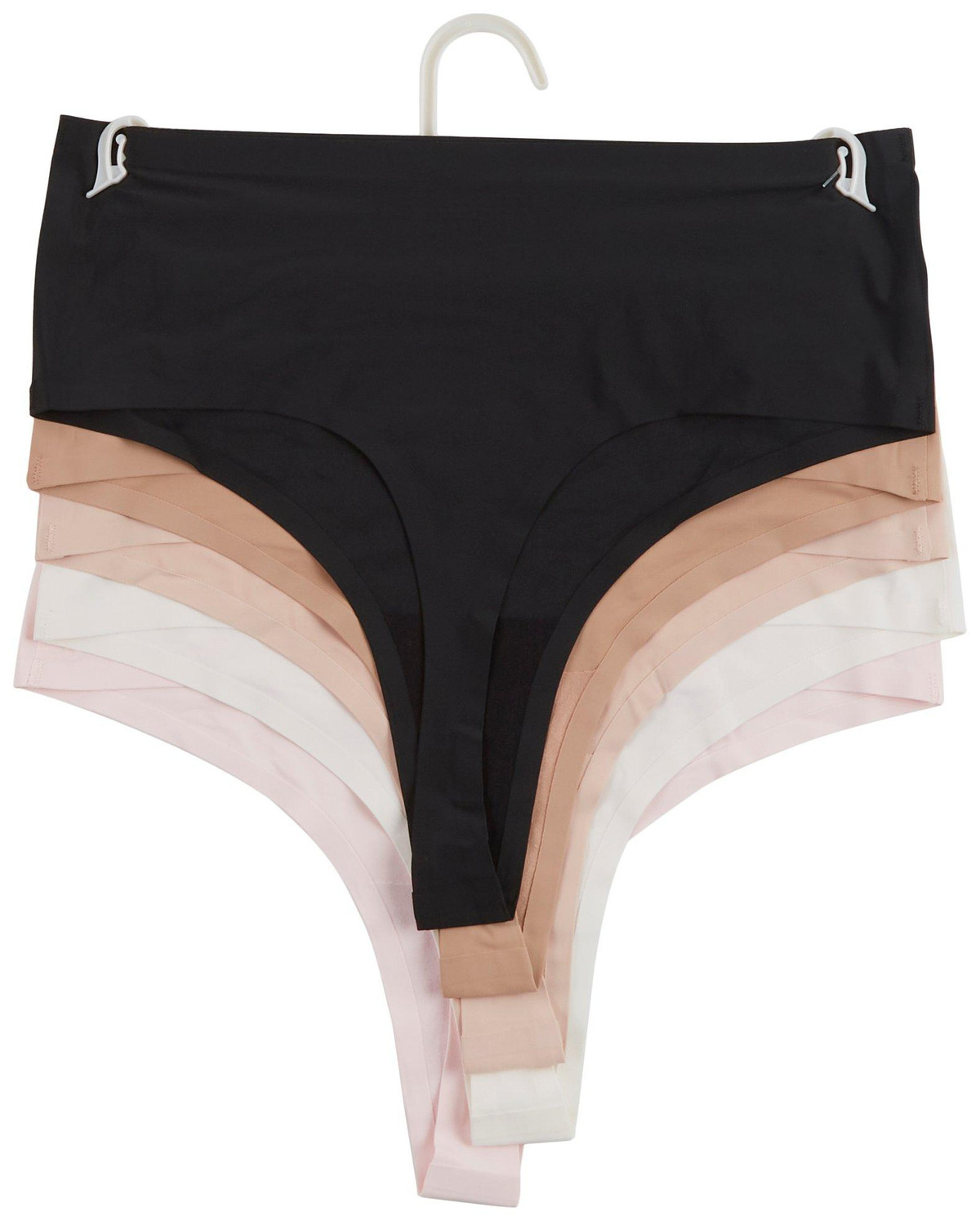 This 5 pack of high waist micro bond thongs delivers sleek support with a barely there feel. Crafted with smooth, bonded edges for a seamless fit, each pair sits high on the waist for a flattering silhouette. The assorted colors add a playful twist to your top drawer essentials. Fabrication is 90% nylon, 10% spandex.