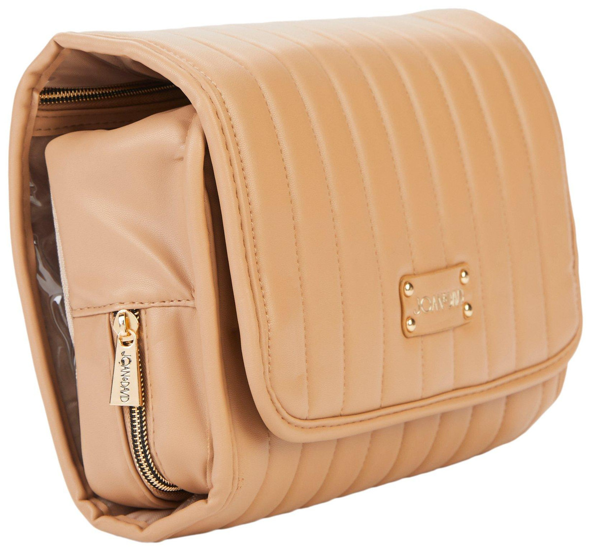 Tired of messy makeup bags? The Joan + David Quilted Hanging Organizer Cosmetic Case is built for women who demand elegance and efficiency. With a luxe quilted exterior, multiple zippered and slip pockets, and a built-in hanger for instant access, it turns any space into your personal beauty station. Travel smart, stay organized, and make a statementthis isnt just a cosmetic case, its your new essential.