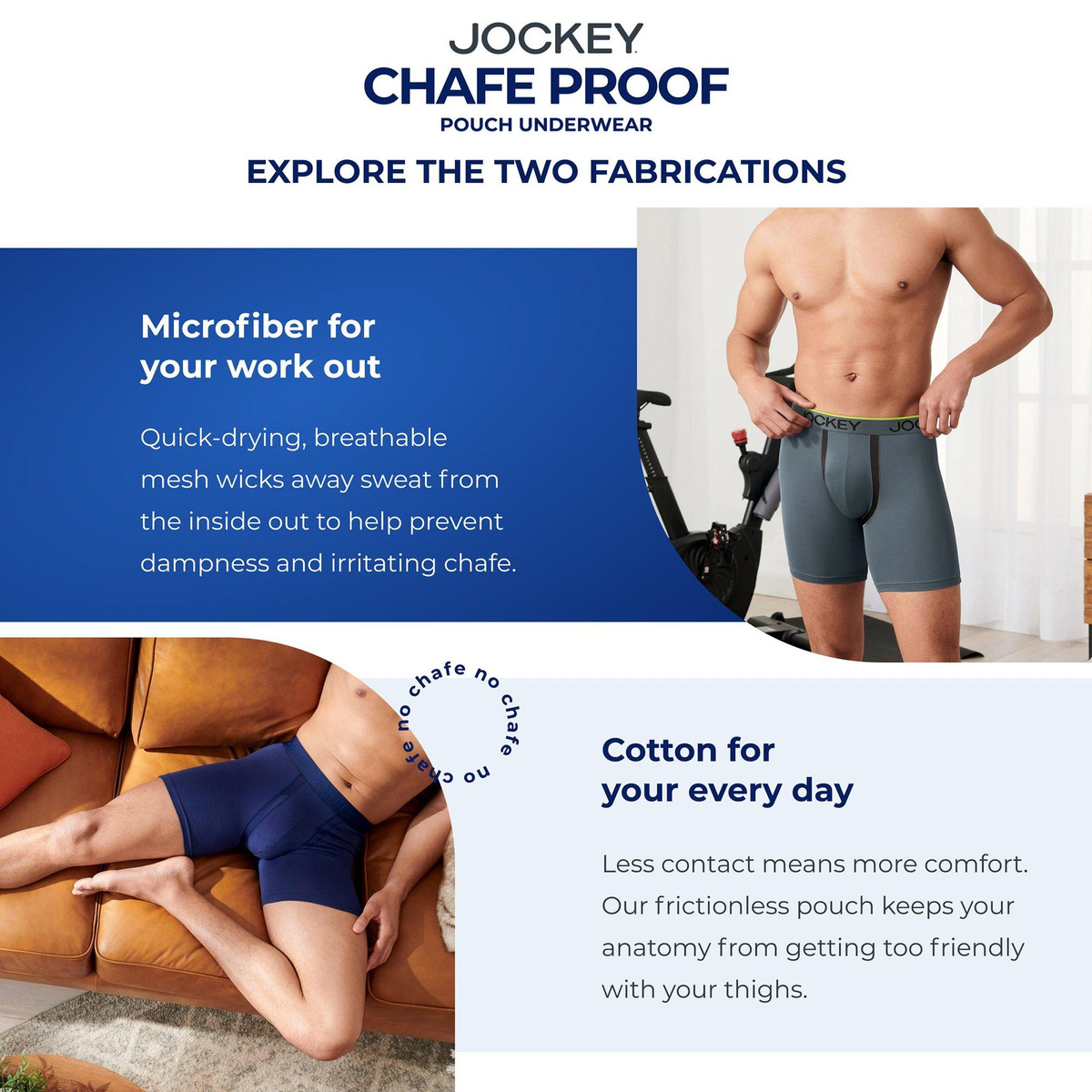 Get going in underwear made for your active life by Jockey. These lightweight boxer briefs offer soft & breathable fabric for optimal comfort, moisture wicking properties to help keep you drier when you’re on the go, StayNew technology that keeps them looking & feeling brand new after every wash, a working fly, and branded elastic waist. Pack includes three pairs of boxer briefs.