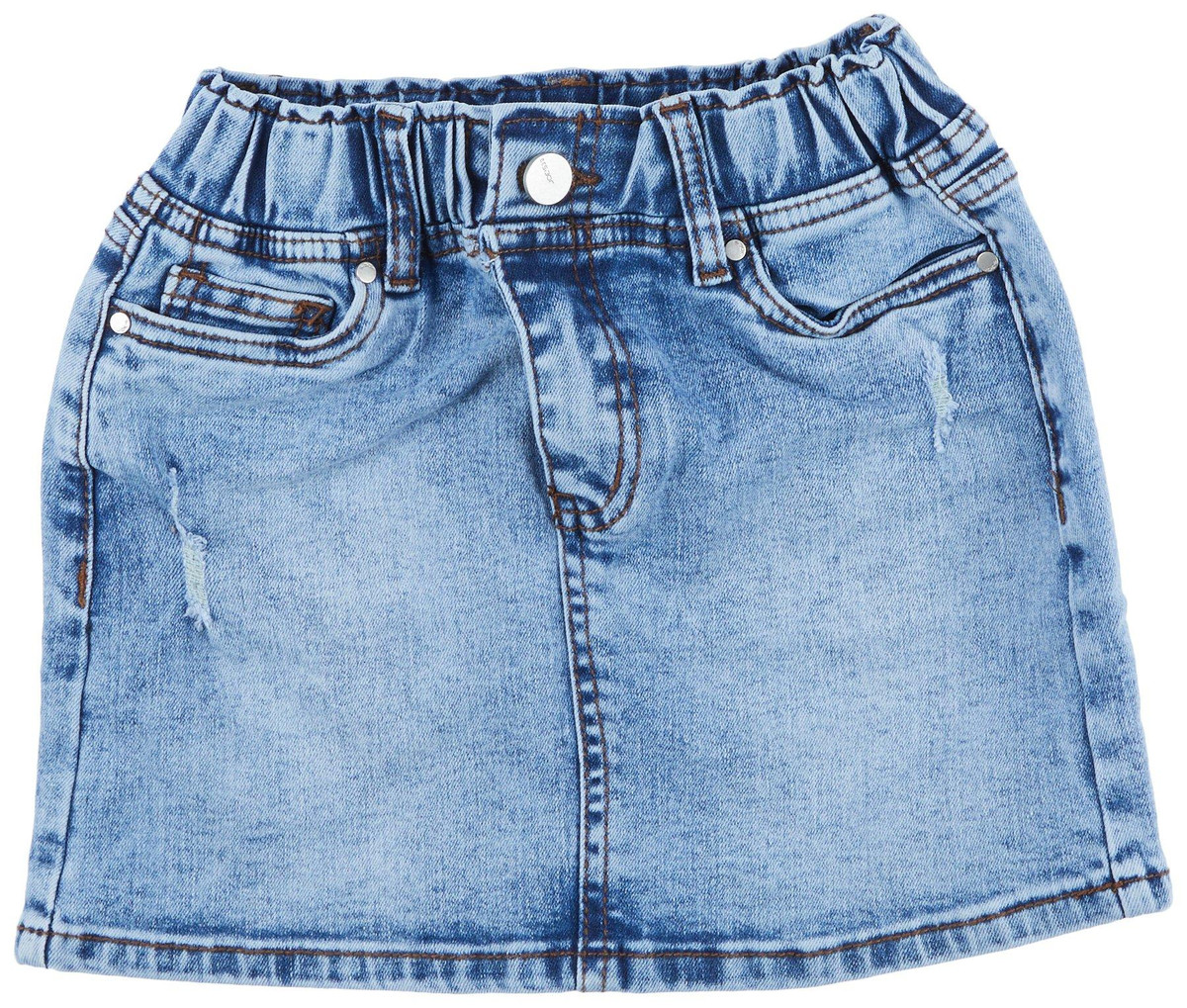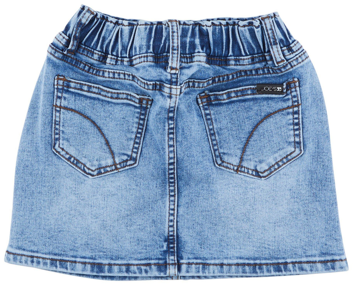 Stretch-kissed denim with classic fading and distressing brings the perfect lived-in look to this casual skirt that your kid will love wearing everywhere. Zip fly with button closure. Five-pocket style. Elastic Wast. 67% cotton, 32% polyester, 1% spandex.