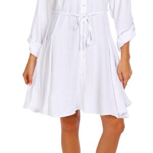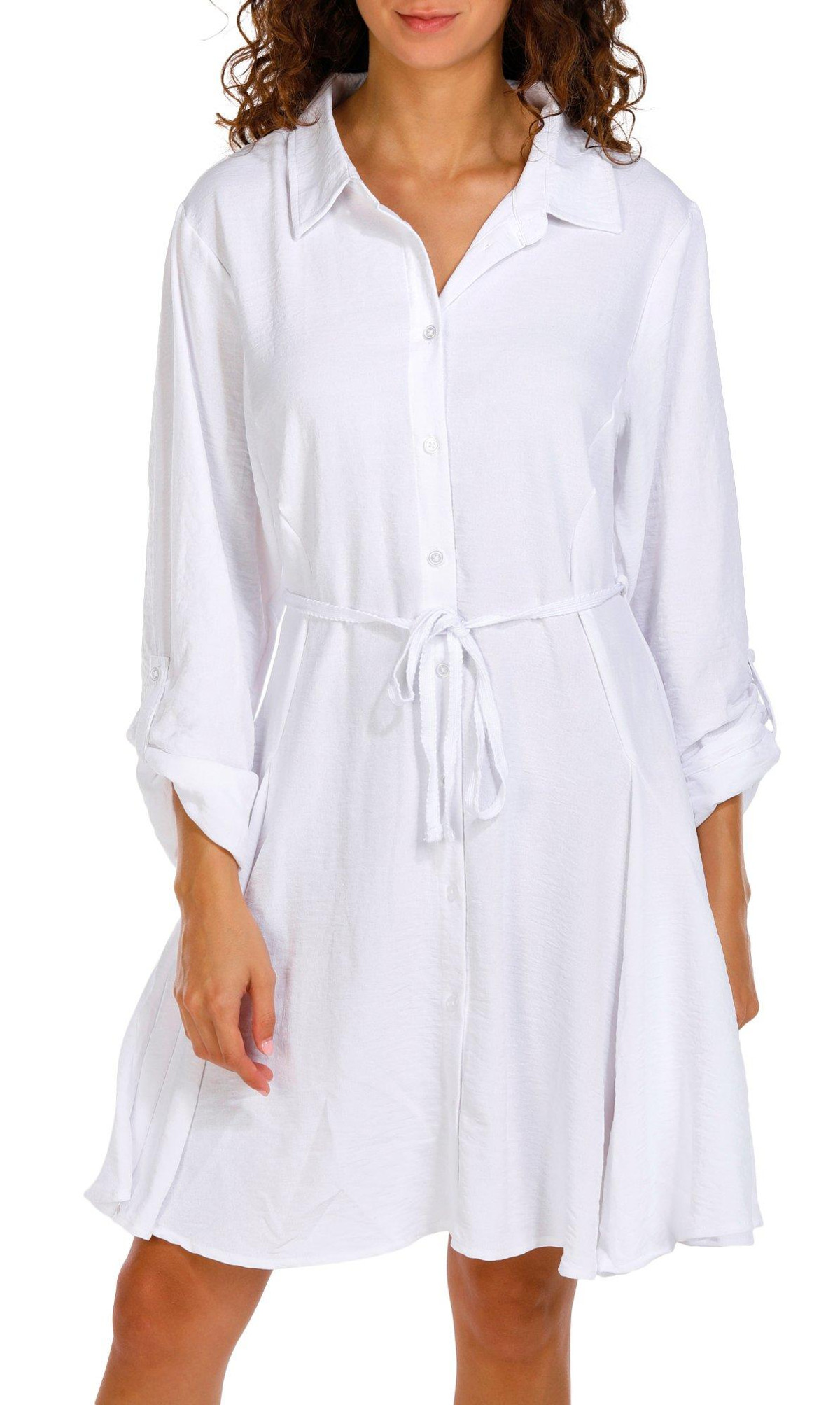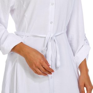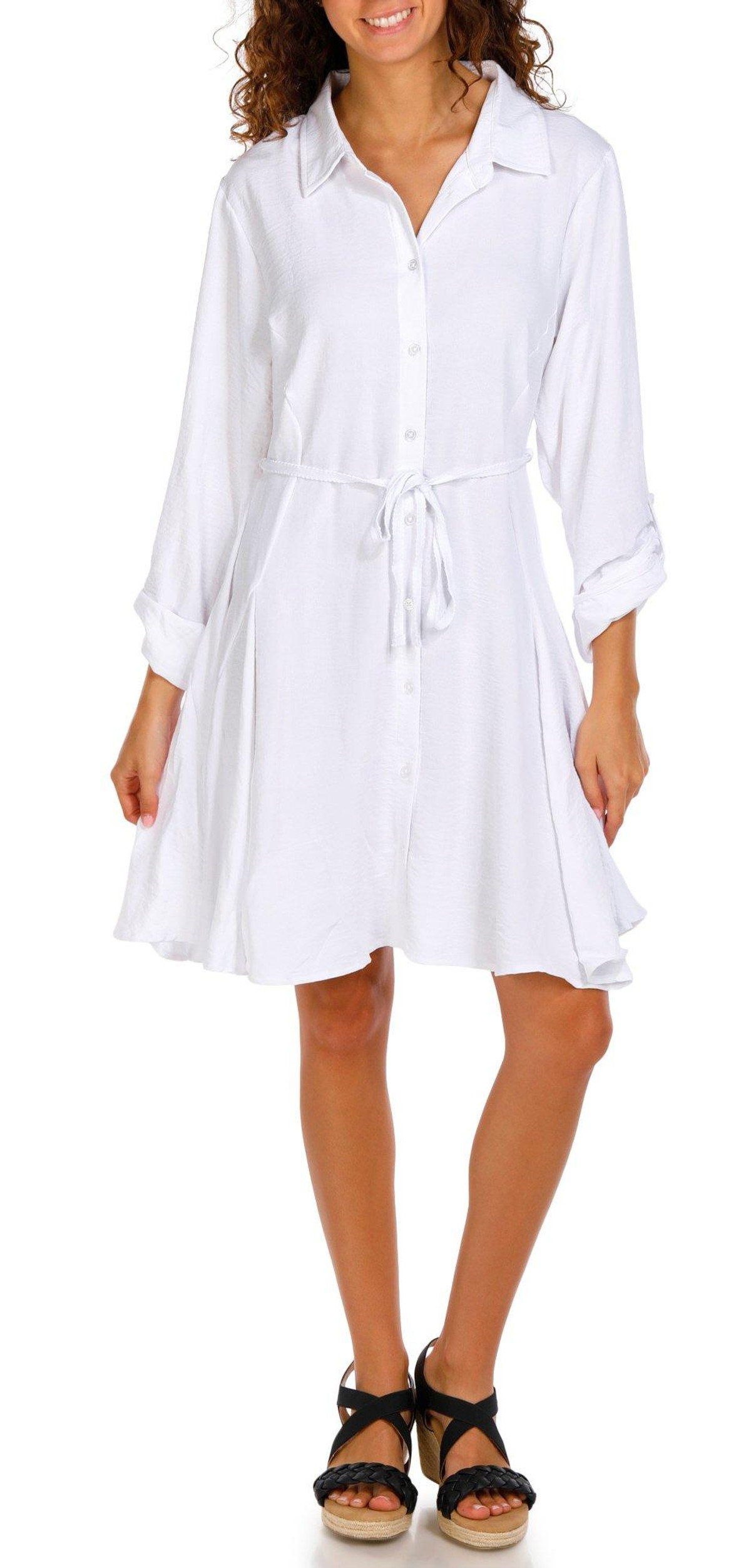 Classic meets casual in this 3/4 Sleeve Shirt Dress. Featuring a buttoned front, roll tab sleeves, and a flattering waist tie detail, it falls to a versatile knee length. Perfect for workdays, weekend plans, or relaxed afternoons out.
