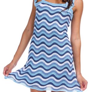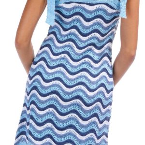 Turn heads in this sleeveless mini dress, featuring a beautifully textured crochet fabric shell with a bold chevron pattern. Fully lined for comfort and coverage, its the perfect blend of boho charm and modern flair, ideal for sunny days and breezy nights. Shell is 100% acrylic. Lining is 100% polyester.